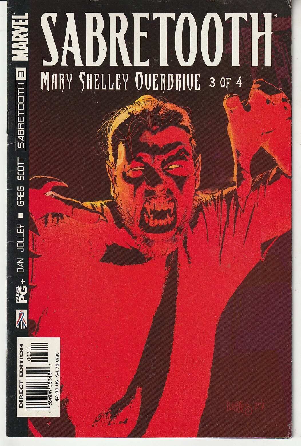 Sabretooth: Mary Shelley Overdrive #3 (2002)Fine condition - cracks and chink on front and back of spine. Cover and interior pages in pristine condition.