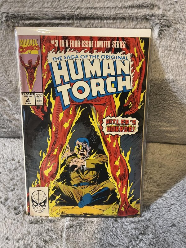 Saga of the Original Human Torch #3 (1990). Please see photo/photos for conditions, I do not claim that any comic is NM and I price according to condition! All books will arrive bagged & boarded for your storing pleasure!Seller Information