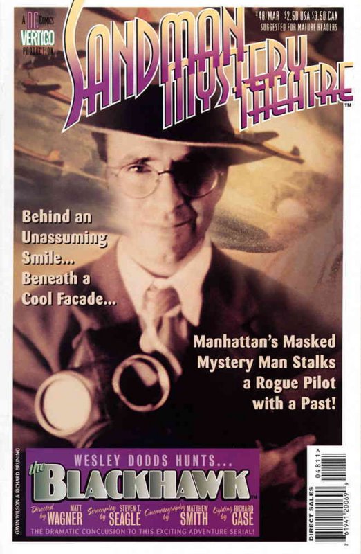 Item: Sandman Mystery Theatre #48 | Publisher: DC/Vertigo | Cover Date: March 1997 | Writer: Matt Wagner, Steven Seagle | Artist: Matthew Smith | Cover Artist: Gavin Wilson, Richard Bruning | Appearances: Blackhawk | Storylines: The Blackhawk, Part 4 | Notes: Photo cover | With Economy shipping, each additional comic ships for just 50 cents more to customers in the USA. This listing contains a stock photo and information from ComicBase™ and © Human Computing. The stock photo is for reference only. If you would like to see a photo of the actual item, please message us prior to purchasing.Seller Information