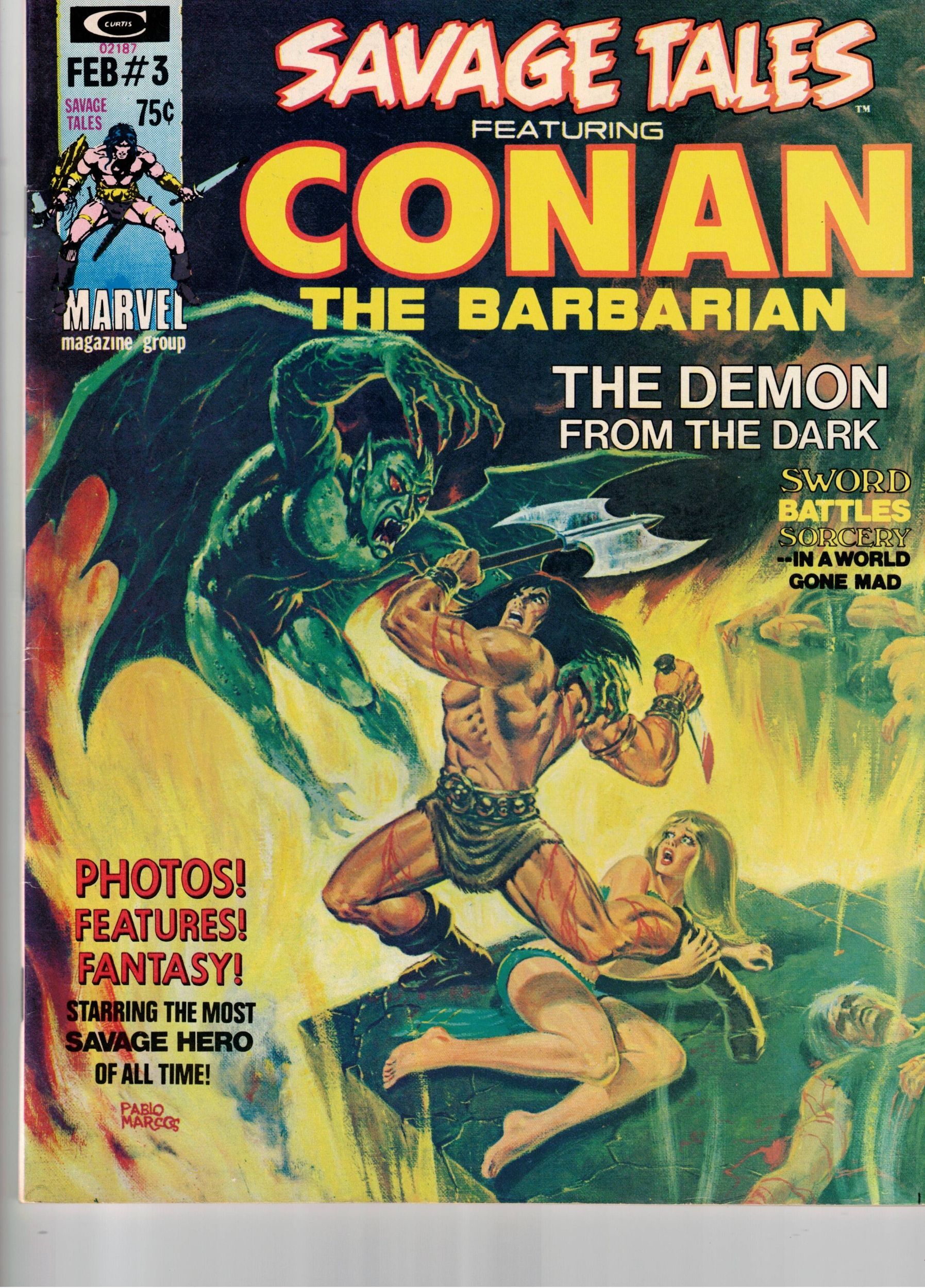 "The Lurker in the Catacombs"`"An Age Undreamed Of"`"Red Sonja"`"The Crimson Bell"`"The Fury of the Femizons"`"The Art of Red Nails"`"The Once and Future Talon"`"Savage Tales Feature Page"`"He Comes from the Dark"