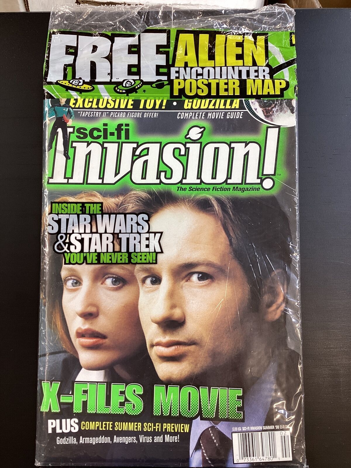 Sci-Fi Invasion: Guide to Science Fiction Entertainment #4 - X-Files cover WITH EXTRAS Opened polybagged. Includes poster. 1998's upcoming Summer Blockbusters-- Godzilla, Deep Impact, Second Arrival, The X-Files, Th ... Read More