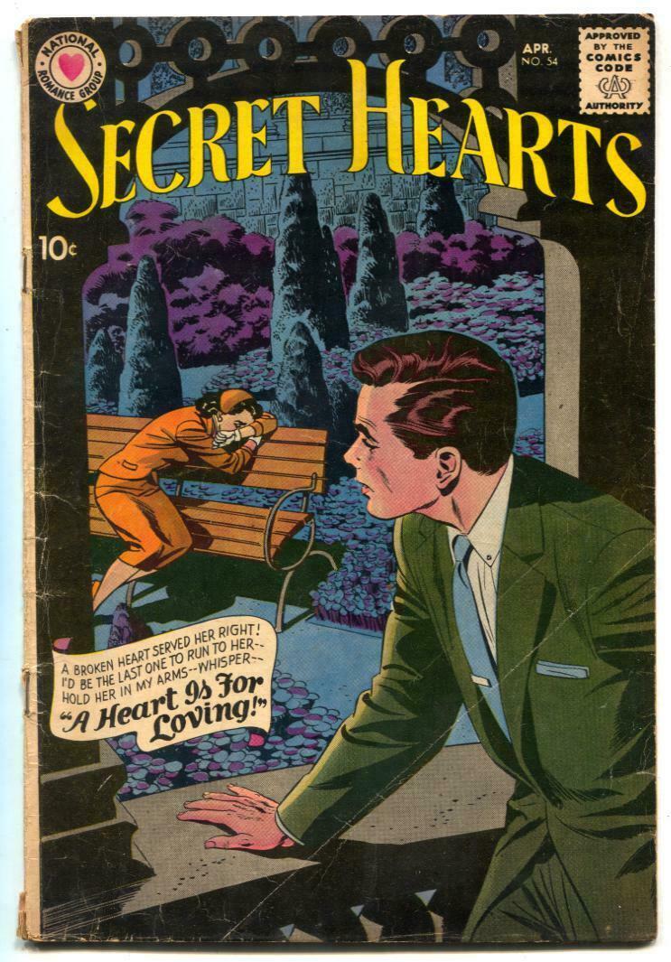 Secret Hearts Issue: 54 / Year: 1959 Condition: VG-Great comic with a fabulous masked heroine story. Glossy cover, almost VG condition, date stamp on backcover. Publisher: DCSku: U3-04-102 Over 100,000 mail orders processed! Buy with confidence.