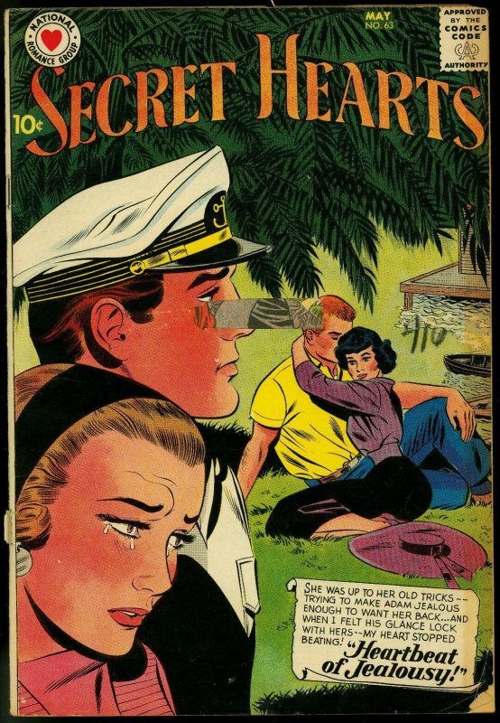 SECRET HEARTS #63 1960-DC ROMANCE-LOVE TRIANGLE COVER! FR/G