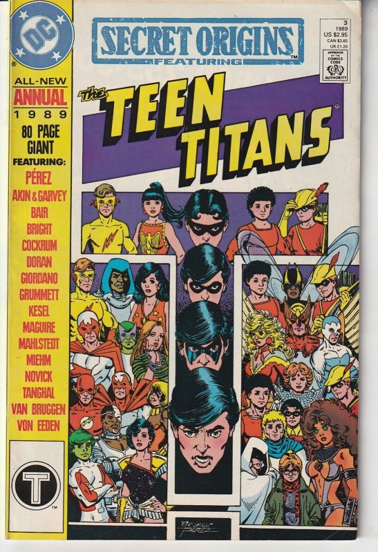 Secret Origins Annual #3 (1989) Near Mint (9.2)- Virtually no defects. Spine, Cover, and Pages in Pristine Condition(Creamy white, no fading) Nightwing must delve into the histoty of the Teen Titans in order to flus ... Read More