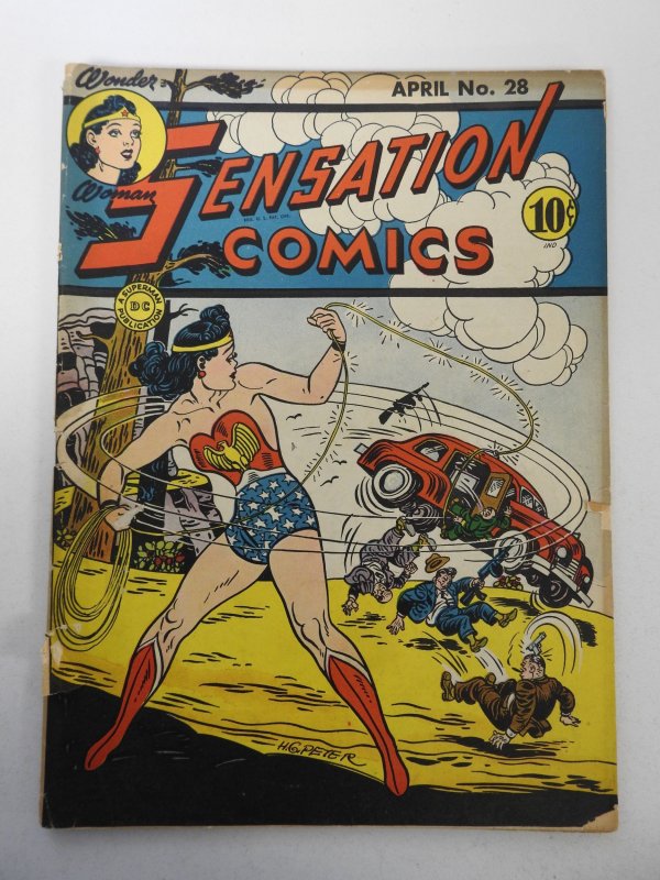Sensation Comics #28 (1944) VG- Cond 1 in cumulative spine split, tape pull fc