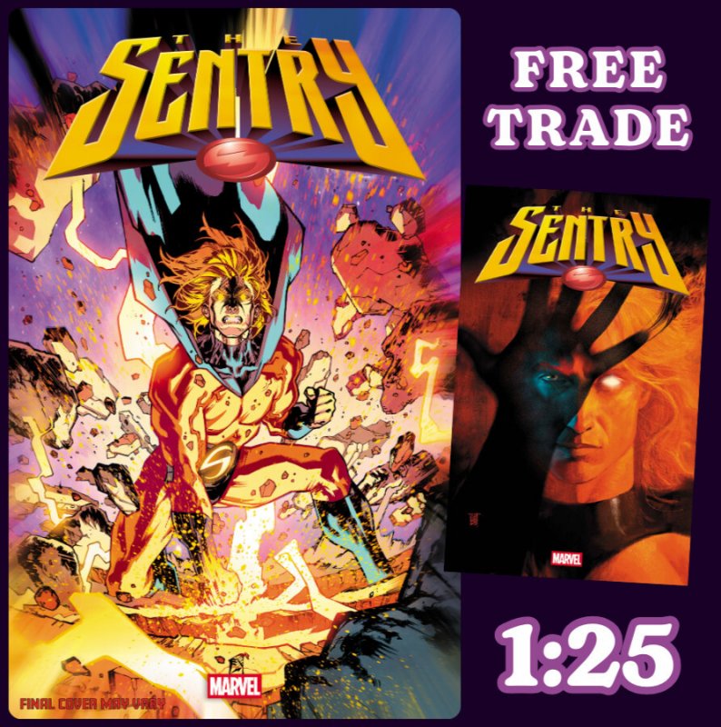 Grade: 9.6 Near Mint+SENTRY #1 ? 1:25 C.F. VILLA VARIANTNote: Buy the SENTRY #1 ? 1:25 C.F. VILLA VARIANT and get a FREE TRADE COPYHE'S BEEN AN AVENGER, A DARK AVENGER AND A THUNDERBOLT! THE SENTRY IS BACK — BUT SO IS THE VOID! FROM CREATOR PAUL JENKINS COMES A BOLD, HIGH-STAKES EPIC ABOUT MARVEL'S MOST DANGEROUS HERO — THE SENTRY, A MAN WITH THE POWER OF A MILLION EXPLODING SUNS — AND THE DARK ENTITY BORN FROM HIS OWN PSYCHE: THE VOID. WHEN THE VOID RESURFACES, THREATENING TO UNRAVEL REALITY ITSELF, THE SENTRY MUST BATTLE NOT ONLY COSMIC FORCES AND CRIMINAL EMPIRES, BUT THE MONSTER WITHIN. GUEST-STARRING REED RICHARDS, SPIDER-MAN AND THE KINGPIN IN A TALE OF IMPOSSIBLE CHOICES AND DEVASTATING CONSEQUENCES. CAN THE SENTRY SAVE EVERYTHING WHEN THE COST MIGHT BE EVERYTHING HE LOVES?NEAR MINT+ SHIPS IN GEMINI COMIC MAILERSHIPPED VIA MEDIA MAIL1-5#