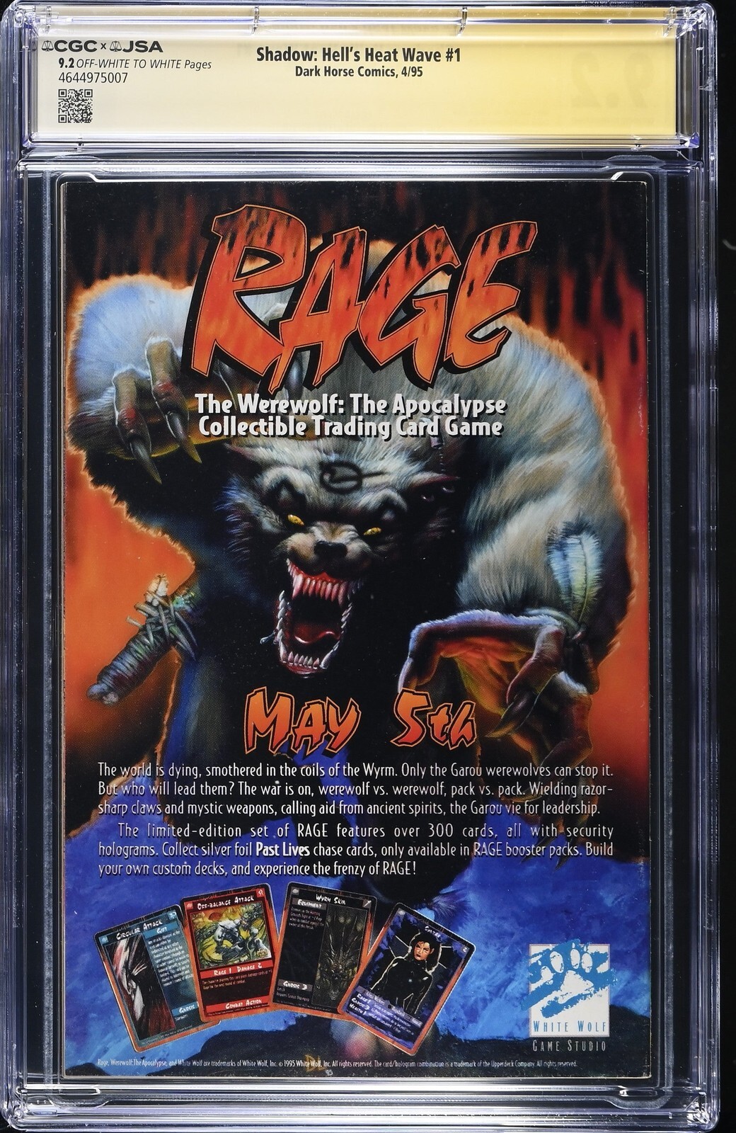 Shadow: Hell's Heat Wave #1 from 4/95 offers a glimpse into the era's iconic storytelling. This issue is a must-have for collectors. Add this CGC 9.2 graded comic to your collection today!Attribute DetailsCertNumber 4644975007DisplayGrade 9.2GradeCategory CGCxJSAPageQuality OFF-WHITE TO WHITEArtComments Mike Kaluta & Joel Goss story, Garry Gianni cover & artCollectibleID 34839CollectibleType CTitle Shadow: Hell's Heat WaveIssue 1IssueDate 4/95Publisher Dark Horse ComicsYear 1995PopulationAtGrade 1population_9_2 1GraderNotes Alec Baldwin autograph deemed authentic by JSA., spine stress lines cover, crease bottom of back coverSignatures ALEC BALDWIN AUTHENTICATED AUTOGRAPHSales History