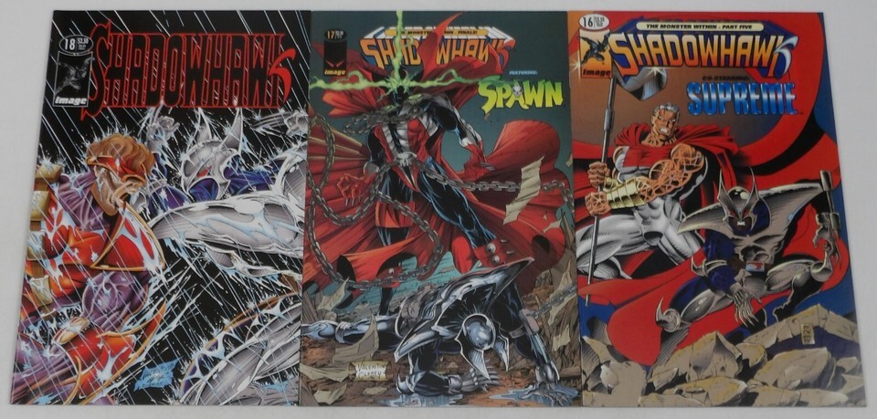 Shadowhawk #0 & 1-18 is published by Image. Written by Jim Valentino. Illustrated by Jim Valentino. Complete series! Issues #5-7 published as Shadowhawk II #1-3; issues #8-11 published as Shadowhawk III #1-4.