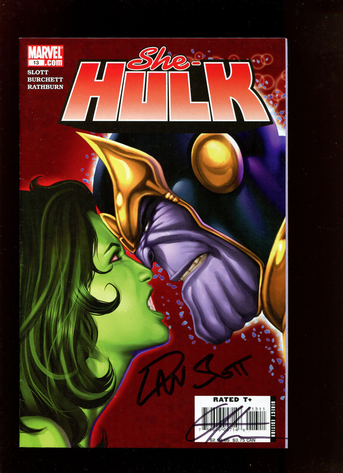 SHE-HULK # 13 - THANOS COVER; SIGNED BY DAN SLOTT & GREG HORN (9.2 OB) 2006