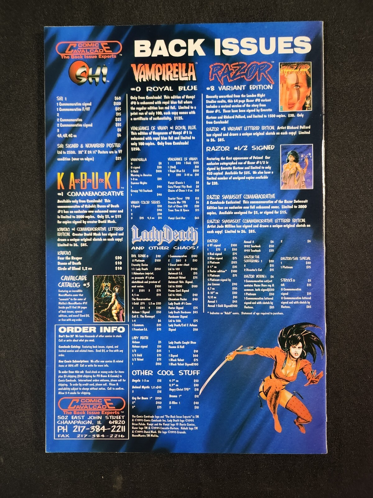 Grade: 9.0 Very Fine/Near MintShi 7PC #1 - Fan Appreciation Edition / All Posters Intact / 4x Trade Dress, 3x Virgin Variants (9.0/9.2) 1994Size: 7" x 10"This item was uploaded by __LM__.WE COMBINE SHIPPING!!! Either wait for us to send you an invoice after you commit to buy or, if it makes you pay right away, message us back and we'll refund the excess charge. Buy as many single comic books as you want for one low flat shipping rate in the United States! International will be charged exact according to size and weight.If you have any specific questions or requests, please ask us prior to ordering and we'll get back to you as soon as we can.If there are any problems with your order whatsoever, please message us before leaving feedback and we'll be happy to work with you to fix the situation! We ship worldwide, combine purchases, and charge exact shipping. The price may vary based on size, weight, and location. If you are automatically overcharged for shipping, message us and we'll be happy to revise the invoice or refund you the excess amount. If you have any questions regarding shipping, please message us.International Buyers - Please Note:Import duties, taxes, and charges are not included in the item price or shipping cost. These charges are the buyer's responsibility.Please check with your country's customs office to determine what these additional costs will be prior to bidding or buying.Payment can be made by PayPal and credit cards directly.120,000+ items in total in my Hip store!Frequently Asked Questions:When are your operation hours?Our in office hours are Monday - Friday, 11 am - 8 pm. We are not open on weekends, so if you send us a request on Friday evening we won't get back to you until Monday afternoon. Please don't take it as us ignoring you! We will work on your request Monday and get back to you as soon as we can. Also, if you order from us on a Friday evening or Saturday morning we won't start processing your order until we open on Monday. That means on Monday it will be pulled and prepped for shipping, then picked up by the postman on Tuesday morning.When will you ship my item? The tracking hasn't moved.We realize you're eager to get your item, so if the tracking hasn't moved in a few days please don't be concerned. We give the postman a lot of packages daily, sometimes as many as 100, so he does not scan each item for us upon pickup as he says it would be too time consuming for him to do so. If you get a tracking number from us, that almost always means your item was picked up by the postman the next business day. The USPS is also imperfect. There are times when the tracking won't even show movement until it's in your area's regional distribution center. This is normal in our experience.Is the item pictured the exact one for sale?Yes! We don't use stock images and go through great lengths to scan or photograph everything we list. The item pictured is exactly what you should receive UNLESS it is a fixed price listing with multiple items available.Can you issue a COA?We can, upon request. Please make sure you leave us a note while checking out and shoot us a message immediately after requesting one, just to be sure.How do you grade?Grading is very subjective, but we are professionals with decades of grading experience between us who try the best we can to accurately describe the condition of the items we list.Anthony is an Overstreet Comic Book Price Guide AdvisorPlease see the grading chart below for a breakdown of how we grade:NOTE: We don't grade any raw books higher than 9.2, as once you go higher than that grading gets really subjective. If you buy a NM book from us, it may very well be higher than 9.2 but we play it safe and grade conservatively. 9.2 NM Near Mint 9.0 VF/NM Very Fine/Near Mint 8.5 VF+ Very Fine+ 8.0 VF Very Fine 7.5 VF- Very Fine- 7.0 FN/VF Fine/Very Fine 6.5 FN+ Fine+ 6.0 FN Fine 5.5 FN- Fine- 5.0 VG/FN Very Good/Fine 4.5 VG+ Very Good+ 4.0 VG Very Good 3.5 VG- Very Good- 3.0 GD/VG Good/Very Good 2.5 GD+ Good+ 2.0 GD Good 1.8 GD- Good- 1.5 FR/GD Fair/Good 1.0 FR Fair 0.5 PR PoorHow do you ship comics?We ship in rigid cardboard mailers to protect your comic book from the worst the mail system has to offer. Price varies based on the number of books you purchase, but we try to keep costs as low as we can and charge exact shipping. If it looks unusually high to you please send us a message and we'll be happy to double check for you.Do you combine shipping?Yes, of like items. Such as: several comics can fit in one cardboard mailer, as can more than one record. Multiple art pages can easily be combined because they are light and thin. Where combined shipping differs is with size and weight. For instance, two statues require a much bigger box. Same goes for CGCs, as the package gets bigger and heavier as you go.Do you ship well? I've had some bad experiences...You needn't worry; we are professionals who value your business and want your item to arrive safely as much as you do. I have been collecting for over 30 years. I send out items the way I would like to receive them.The tracking says my item is "OUT FOR DELIVERY" in New Jersey. Why is that?If the tracking indicates that the item is "OUT FOR DELIVERY" in NJ don't worry, it's just what the tracking says when it's carried over from the postman to the sorting center. This is normal for our Post Office and will not impact you receiving your item in a timely matter.What is the difference between a RUN and a LOT?Good question. A RUN will be a collection of consecutive issues with no breaks in between them. If it says RUN of #s 1 - 50 you will receive 50 consecutive comics. A LOT will be within a certain range, so a 50pc LOT will not contain consecutive books.I changed my mind after successfully winning the auction or fixed price listing, will you cancel the transaction?Please only bid or hit BUY IT NOW if you are willing to follow through and pay for the item, we will not cancel the transaction. As a selle