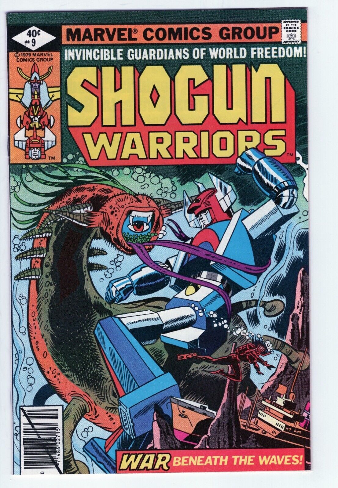 SHOGUN WARRIORS #9 - 8.0 - WP - VS StarchildDESCRIPTION:This beautiful unrestored copy is complete, fully readable and has both covers attached. The book has very high cover gloss, a very tight spine and white pages. This book features Shogun Warriors versus Starchild. The book is sent in a mylar sleeve with a backing board. Condition is a very conservatively graded 8.0, VFN.SHIPPING INFORMATION:Combine our auctions and $ave on shipping!Please remember that Media Rate may take up to 4 weeks delivery.FEDEX services available.Nevada residents, please add sales tax.We accept PayPal, MasterCard, Visa, Discover, American Express.NOTES AND FINE PRINT: Welcome to Redbeard's Book Den! For most that have collected comic books for the last 30 years, you have probably heard of us. Redbeard's founder and current owner is Ron Pussell (aka Redbeard), senior Overstreet Price Guide consultant since 1980.REDBEARD'S BOOK DENPO Box 217Crystal Bay, NV 89402-0217 _gsrx_vers_1436 (GS 9.0.5 (1436))