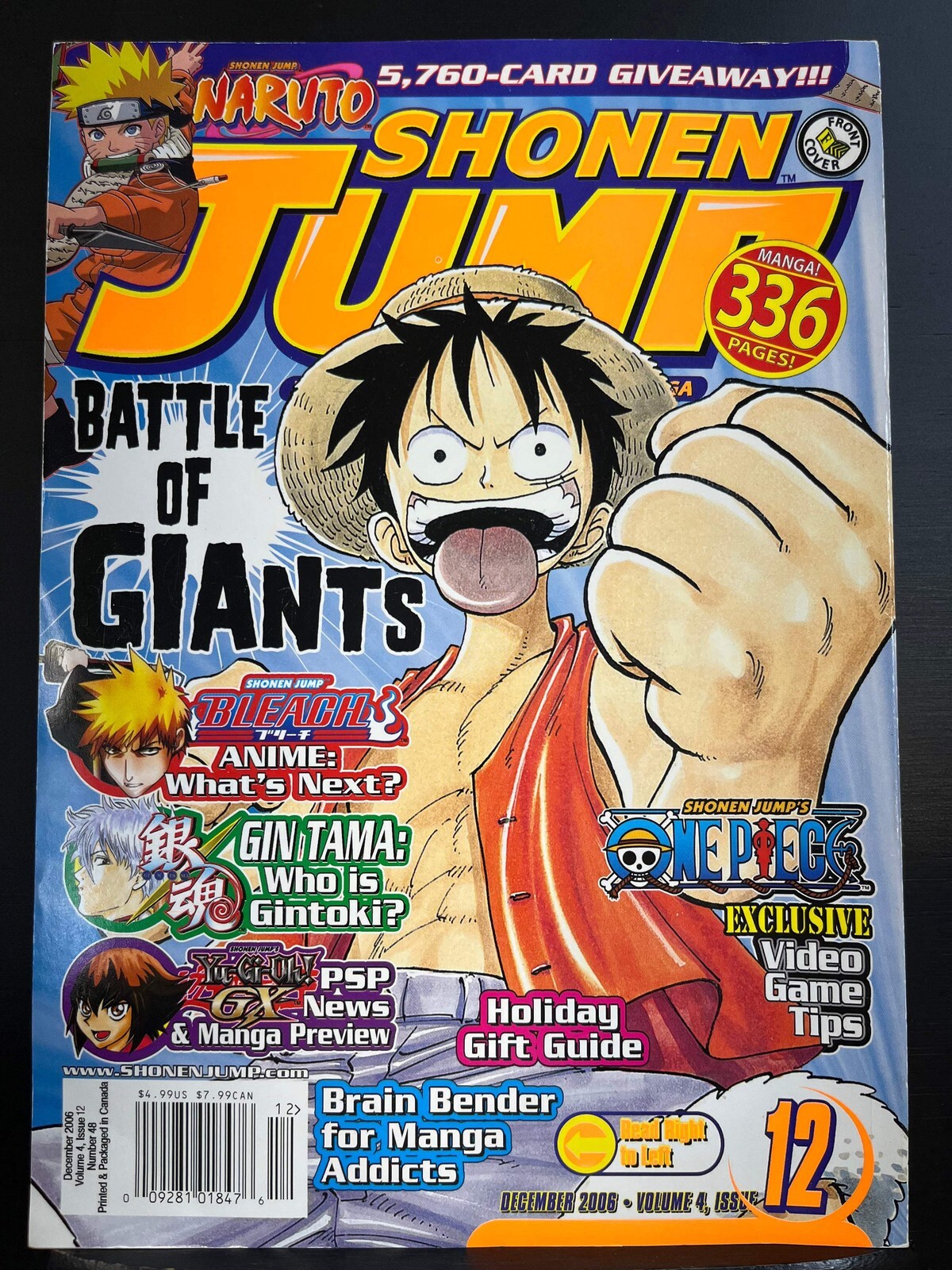 Shonen Jump #48 (Volume 4, Issue 12) December 2006 - One Piece cover (damaged) DOES NOT INCLUDE YU-GI-OH CARD!!! A look at volcanoes, character profile for Gin Tama's Sakata Gintoki, tips for various Naruto games, h ... Read More