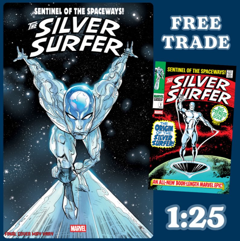 Grade: 9.6 Near Mint+Buy the SILVER SURFER #1 ? 1:25 FACSIMILE EDITION JUSTIN MASON VARIANT and get a FREE TRADE.THIS IS A PRESELL AND RELEASES ON 3/25 AND WE USUALLY SHIP 5-7 BUSINESS DAYS AFTER RELEASETHE SENTINEL OF THE SPACEWAYS' CLASSIC ORIGIN STORY! THE SILVER SURFER, FORMER HERALD OF GALACTUS, HAD CAPTIVATED READERS OF FANTASTIC FOUR AND ESTABLISHED HIMSELF AS ONE OF STAN LEE'S FAVORITE MARVEL COMICS CHARACTERS – AND SO, IN 1968, LEE UNITED WITH LEGENDARY ARTIST JOHN BUSCEMA TO SPIN NEW TALES OF THE SURFER IN HIS VERY OWN SERIES! TRAPPED ON EARTH, THE EVER-REFLECTIVE SURFER PONDERS HIS FATE IN LIFE – AND HIS THOUGHTS WANDER BACK TO HIS DAYS AS SCIENTIST NORRIN RADD ON HIS HOME PLANET OF ZENN-LA! DISCOVER HOW AND WHY HE SACRIFICED EVERYTHING – INCLUDING HIS FUTURE WITH HIS GREAT LOVE, SHALLA-BAL – TO SERVE THE WORLD-EATER! IT'S ONE OF THE ALL-TIME GREAT MARVEL COMIC BOOKS, BOLDLY RE-PRESENTED IN ITS ORIGINAL FORM, ADS AND ALL! REPRINTING SILVER SURFER (1968) #1. MARVEL IS REPRINTING THE GROUND-BREAKING FIRST SEVEN ISSUES OF SILVER SURFER AS THEY ORIGINALLY APPEARED!NEAR MINT+ SET SHIPS IN GEMINI COMIC MAILERSHIPPED VIA MEDIA MAIL1-7#