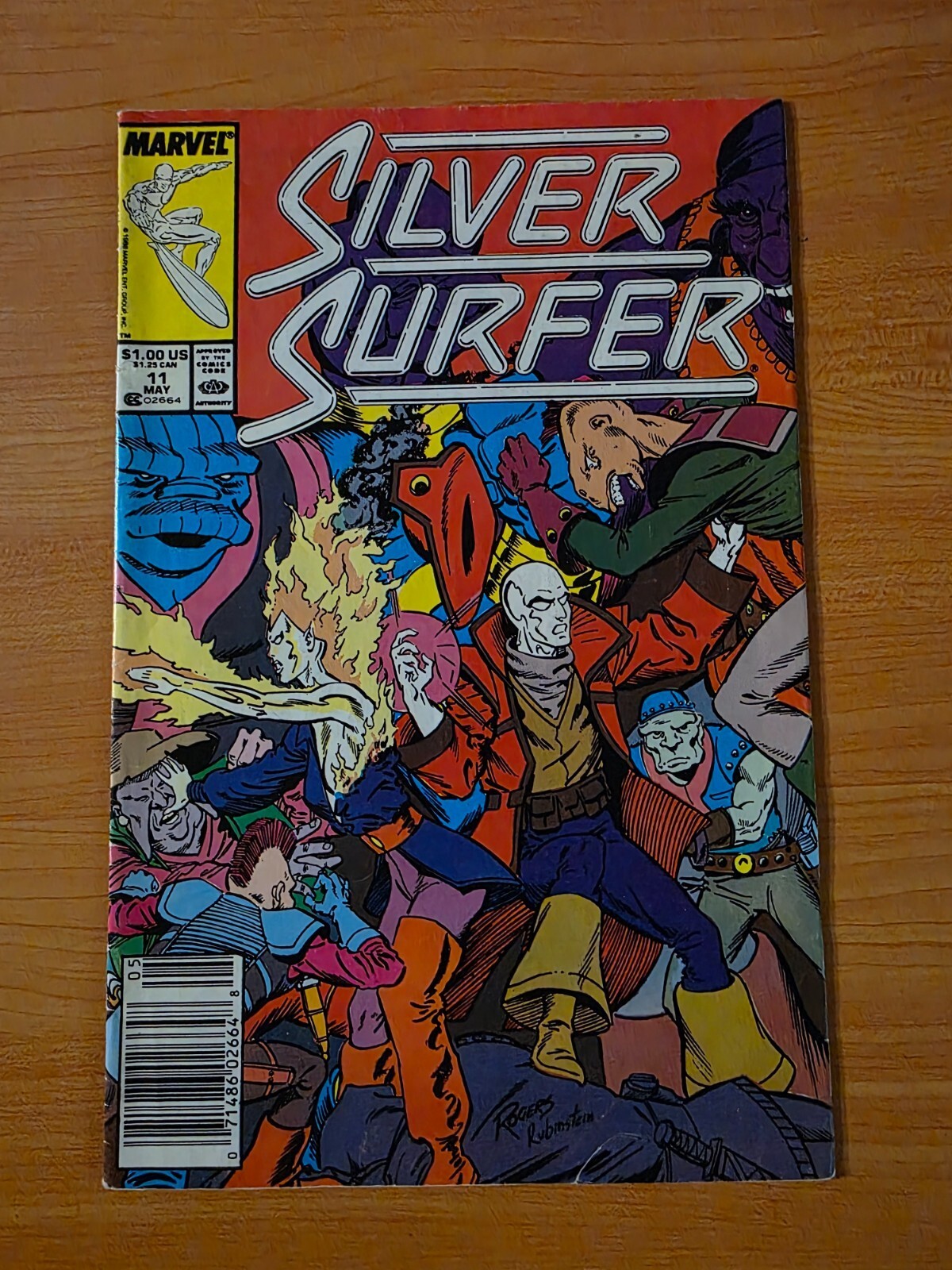 Item DescriptionSilver Surfer #11 Publisher: Marvel ComicsPublished: 1988Item Grade/ConditionGrade: DOLLAR BIN (No Grade Assessment Done, see pictures!)DISCLAMER: While there absolutely are NM books in our dollar bin, many will be low to mid grade. please do not assume minty books these are great for reading and kids but less so for collectors where condition matters! ?For more information about this grade and other grades, please see our grading standards.~ WE TAKE HIGH DEFINITION PICTURES OF OUR COMICS ~ For more detail use the ZOOM Function and check them out yourself! ~Shipping Info:United States: Comic Book & Magazine Orders of all sizes, big and small ship for a flat Single Shipping ChargeInternational: We use Calculated Shipping! ~ This insures that you get the LOWEST POSSIBLE COST! ~ Please give us one business day to calculate large orders! The Calculator for Hip is pretty bad for international, contact us if you are looking to order multiple books so we can help you make it work on the back end! As a courtesy to our customers, we insure all orders over 50$ US ~ YOU DONT PAY EXTRA!Delivery TimeWe process and ship all orders within 1 business days. Once shipped, estimated U.S. transit time is 2-10 business days; international 14-21 business days.(Orders placed on Friday afternoon as well as weekends will be shipped the next business day as we do not ship on the weekends).PackingOmnomax Traders has mastered packing to ensure our orders of a "damage-free transport."Using the following methods, we have seen a nearly perfect 99% success rate for undamaged comics!Here is how our orders ship:All Orders :Bagged AND Boarded, ALWAYS NO EXCEPTIONS!Shipped in a Gemini Comic Mailer OR Tightly secured between 4x stiff pieces of corrugated cardboard (double Sandwiched)Sealed on all 4 sides with strong packing tape (Items doesn't even wiggle).:*Now this method is nearly perfect! however we have seen damage happen to items ( only once or twice a year ) ~ this is often due to bad handling by the postal service. Always remember to contact us if this happens! we are committed to quality service!*Offers History