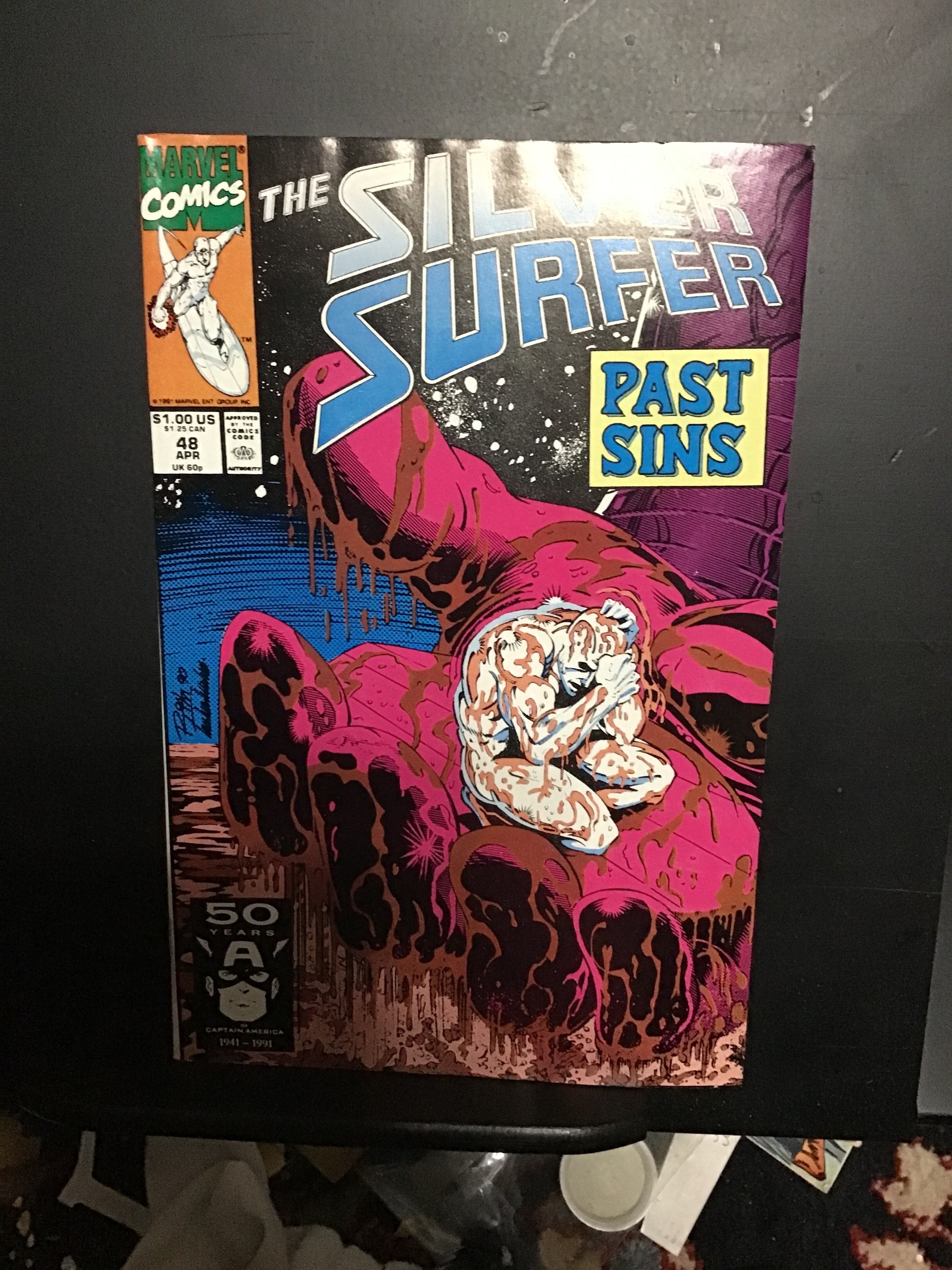Silver Surfer #48 (1991) This book has deep rich color are nice eye-appeal on this all time classic Silver Surfer cover! The book is well attached at the spine and the centerfold. With cream pages and white inside covers. We have adjusted the grade accordingly.Seller Information