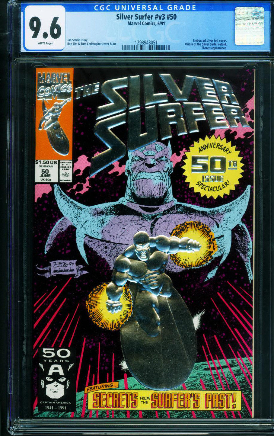 Silver Surfer #50 CGC 9.6 1991-Thanos-Marvel Foil cover 1298943051