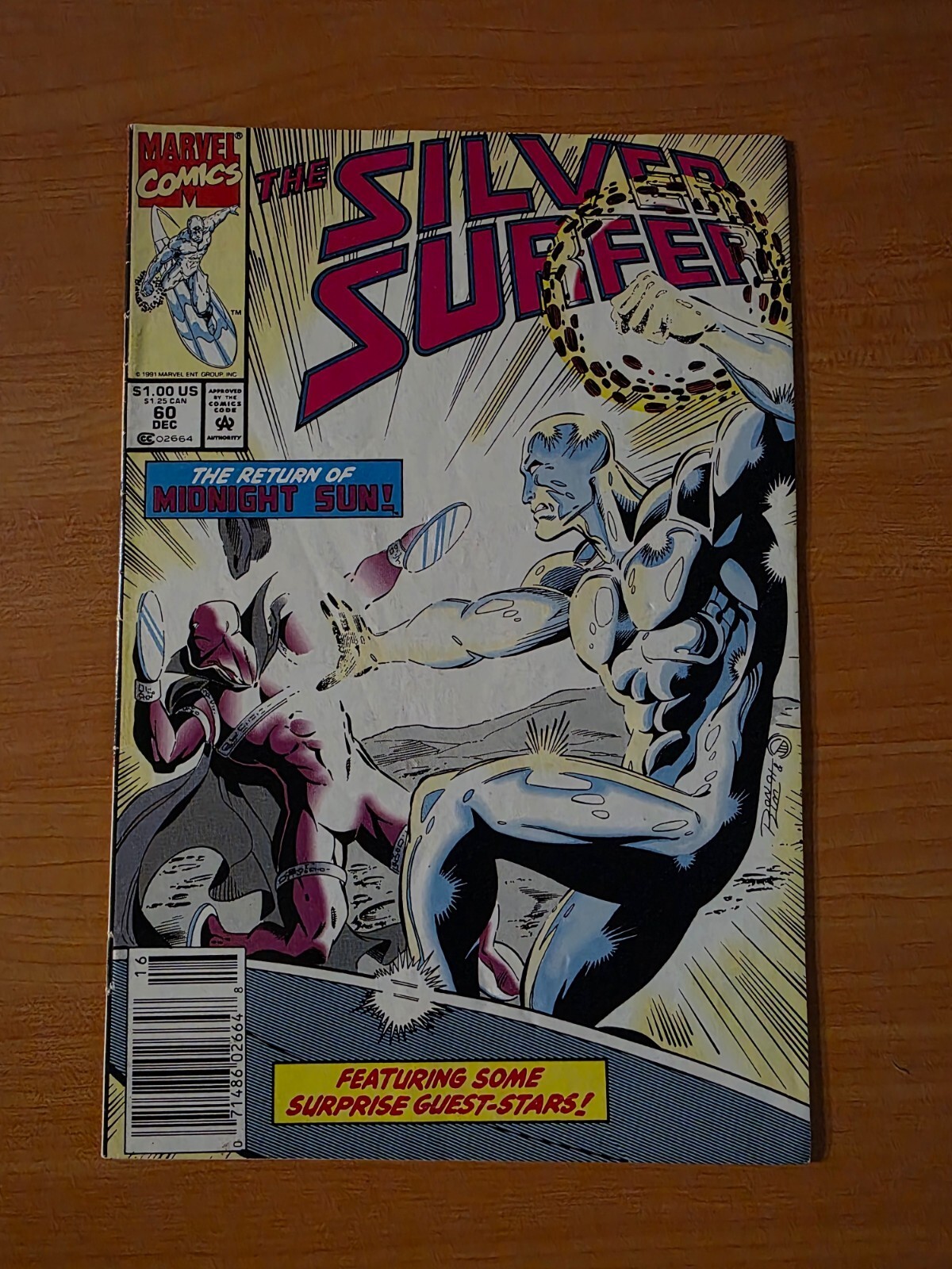 Item DescriptionSilver Surfer #60Publisher: Marvel ComicsPublished: 1991Item Grade/ConditionGrade: DOLLAR BIN (No Grade Assessment Done, see pictures!)DISCLAMER: While there absolutely are NM books in our dollar bin, many will be low to mid grade. please do not assume minty books these are great for reading and kids but less so for collectors where condition matters! ?For more information about this grade and other grades, please see our grading standards.~ WE TAKE HIGH DEFINITION PICTURES OF OUR COMICS ~ For more detail use the ZOOM Function and check them out yourself! ~Shipping Info:United States: Comic Book & Magazine Orders of all sizes, big and small ship for a flat Single Shipping ChargeInternational: We use Calculated Shipping! ~ This insures that you get the LOWEST POSSIBLE COST! ~ Please give us one business day to calculate large orders! The Calculator for Hip is pretty bad for international, contact us if you are looking to order multiple books so we can help you make it work on the back end! As a courtesy to our customers, we insure all orders over 50$ US ~ YOU DONT PAY EXTRA!Delivery TimeWe process and ship all orders within 1 business days. Once shipped, estimated U.S. transit time is 2-10 business days; international 14-21 business days.(Orders placed on Friday afternoon as well as weekends will be shipped the next business day as we do not ship on the weekends).PackingOmnomax Traders has mastered packing to ensure our orders of a "damage-free transport."Using the following methods, we have seen a nearly perfect 99% success rate for undamaged comics!Here is how our orders ship:All Orders :Bagged AND Boarded, ALWAYS NO EXCEPTIONS!Shipped in a Gemini Comic Mailer OR Tightly secured between 4x stiff pieces of corrugated cardboard (double Sandwiched)Sealed on all 4 sides with strong packing tape (Items doesn't even wiggle).:*Now this method is nearly perfect! however we have seen damage happen to items ( only once or twice a year ) ~ this is often due to bad handling by the postal service. Always remember to contact us if this happens! we are committed to quality service!*Offers History