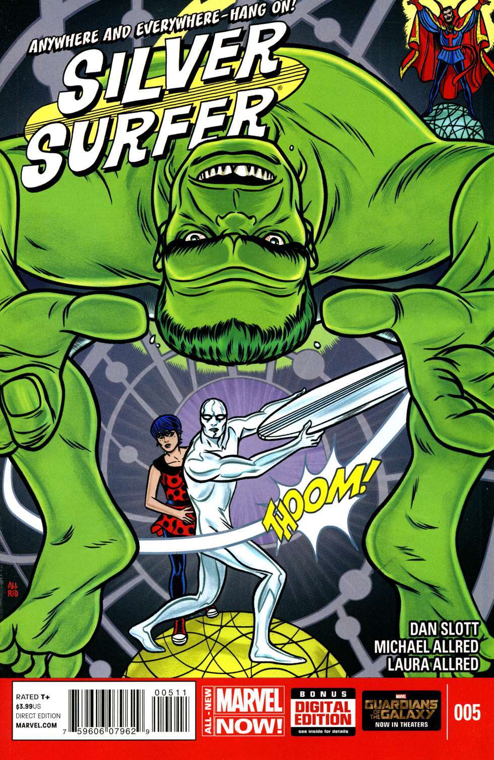 Item: Silver Surfer (6th Series) #5 | Publisher: Marvel | Cover Date: October 2014 | Writer: Dan Slott | Artist: Mike Allred | Cover Artist: Mike Allred | Appearances: Hulk (Bruce Banner), Dr. Strange, Nightmare | S ... Read More