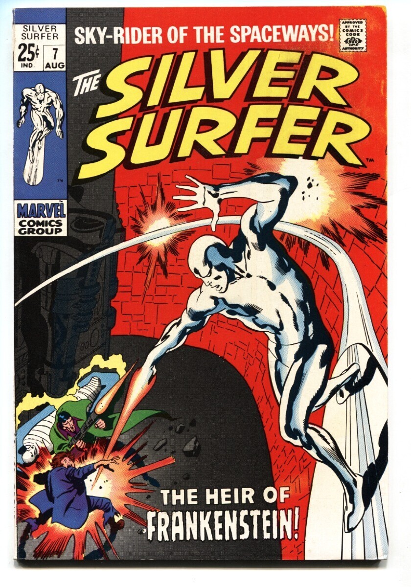 Grade: FN+The silver surfer #7 1969-frankenstein-john buscema art giant frankenstein issue with john buscema art. Discoloration at top left back cover. Grade: fn+ sku: do-45-325