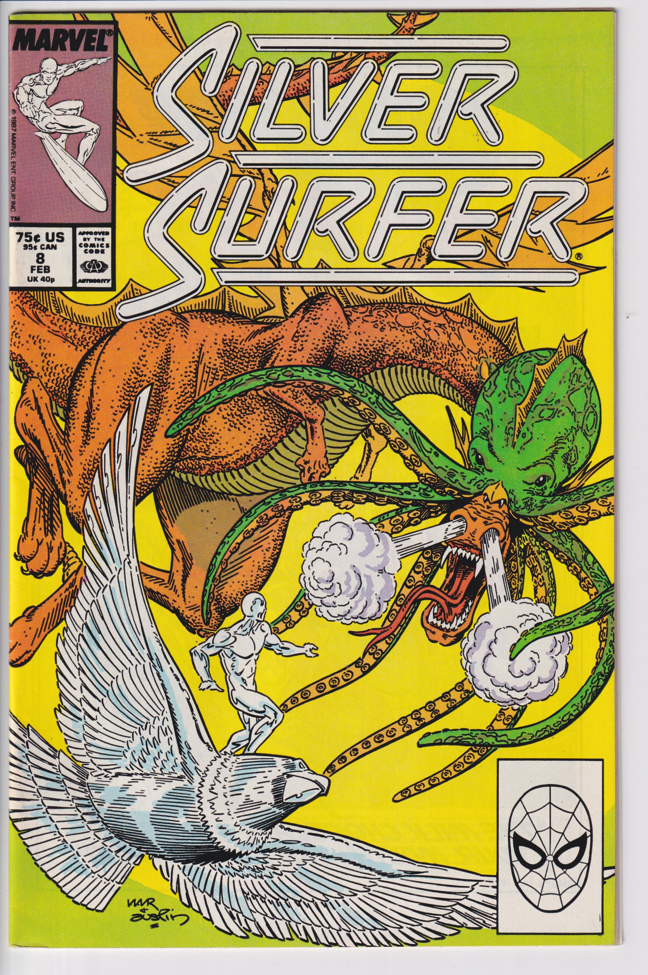SILVER SURFER #8 (Feb 1988) VF+ 8.5 white!