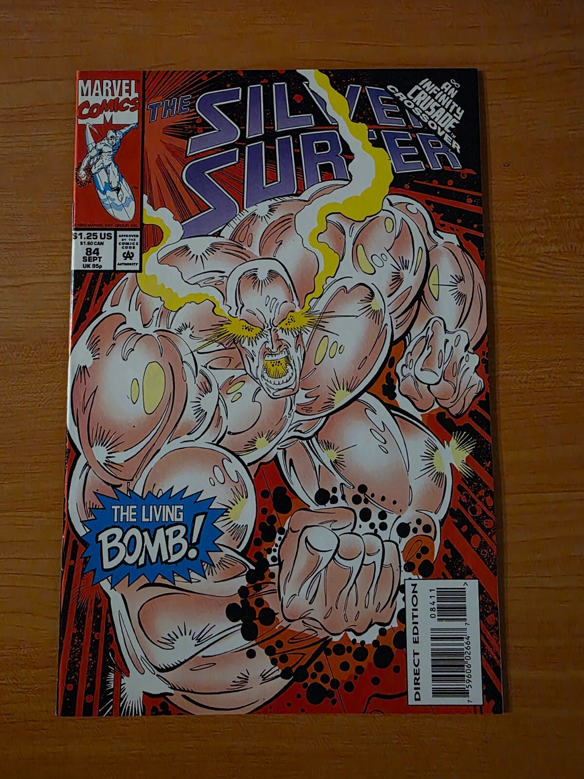Item DescriptionSilver Surfer v3 #84 Direct Market EditionPublisher: Marvel ComicsPublished: 1993Item Grade/ConditionGrade: NEAR MINTFor more information about this grade and other grades, please see our grading standards.~ WE TAKE HIGH DEFINITION PICTURES OF OUR COMICS ~ For more detail use the ZOOM Function and check them out yourself! ~Shipping Info:United States: Comic Book & Magazine Orders of all sizes, big and small ship for a flat Single Shipping ChargeInternational: We use Calculated Shipping! ~ This insures that you get the LOWEST POSSIBLE COST! ~ Please give us one business day to calculate large orders! The Calculator for Hip is pretty bad for international, contact us if you are looking to order multiple books so we can help you make it work on the back end! As a courtesy to our customers, we insure all orders over 50$ US ~ YOU DONT PAY EXTRA!Delivery TimeWe process and ship all orders within 1 business days. Once shipped, estimated U.S. transit time is 2-10 business days; international 14-21 business days.(Orders placed on Friday afternoon as well as weekends will be shipped the next business day as we do not ship on the weekends).PackingOmnomax Traders has mastered packing to ensure our orders of a "damage-free transport."Using the following methods, we have seen a nearly perfect 99% success rate for undamaged comics!Here is how our orders ship:All Orders :Bagged AND Boarded, ALWAYS NO EXCEPTIONS!Shipped in a Gemini Comic Mailer OR Tightly secured between 4x stiff pieces of corrugated cardboard (double Sandwiched)Sealed on all 4 sides with strong packing tape (Items doesn't even wiggle).:*Now this method is nearly perfect! however we have seen damage happen to items ( only once or twice a year ) ~ this is often due to bad handling by the postal service. Always remember to contact us if this happens! we are committed to quality service!*Offers History