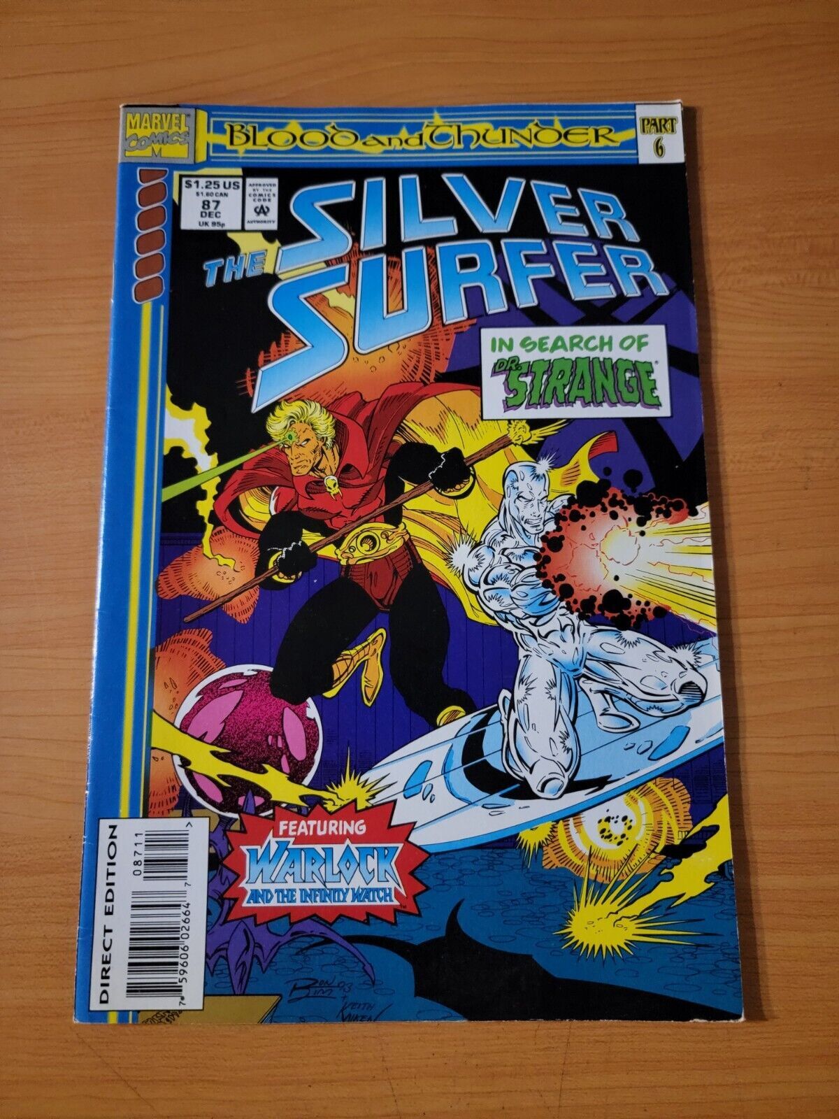Item DescriptionSilver Surfer v3 #87 Direct Market EditionPublisher: Marvel ComicsPublished: 1993Item Grade/ConditionGrade: VERY FINE - NEAR MINTFor more information about this grade and other grades, please see our grading standards.~ WE TAKE HIGH DEFINITION PICTURES OF OUR COMICS ~ For more detail use the ZOOM Function and check them out yourself! ~Shipping Info:United States: Comic Book & Magazine Orders of all sizes, big and small ship for a flat Single Shipping ChargeInternational: We use Calculated Shipping! ~ This insures that you get the LOWEST POSSIBLE COST! ~ Please give us one business day to calculate large orders! The Calculator for Hip is pretty bad for international, contact us if you are looking to order multiple books so we can help you make it work on the back end! As a courtesy to our customers, we insure all orders over 50$ US ~ YOU DONT PAY EXTRA!Delivery TimeWe process and ship all orders within 1 business days. Once shipped, estimated U.S. transit time is 2-10 business days; international 14-21 business days.(Orders placed on Friday afternoon as well as weekends will be shipped the next business day as we do not ship on the weekends).PackingOmnomax Traders has mastered packing to ensure our orders of a "damage-free transport."Using the following methods, we have seen a nearly perfect 99% success rate for undamaged comics!Here is how our orders ship:All Orders :Bagged AND Boarded, ALWAYS NO EXCEPTIONS!Shipped in a Gemini Comic Mailer OR Tightly secured between 4x stiff pieces of corrugated cardboard (double Sandwiched)Sealed on all 4 sides with strong packing tape (Items doesn't even wiggle).:*Now this method is nearly perfect! however we have seen damage happen to items ( only once or twice a year ) ~ this is often due to bad handling by the postal service. Always remember to contact us if this happens! we are committed to quality service!*Offers History