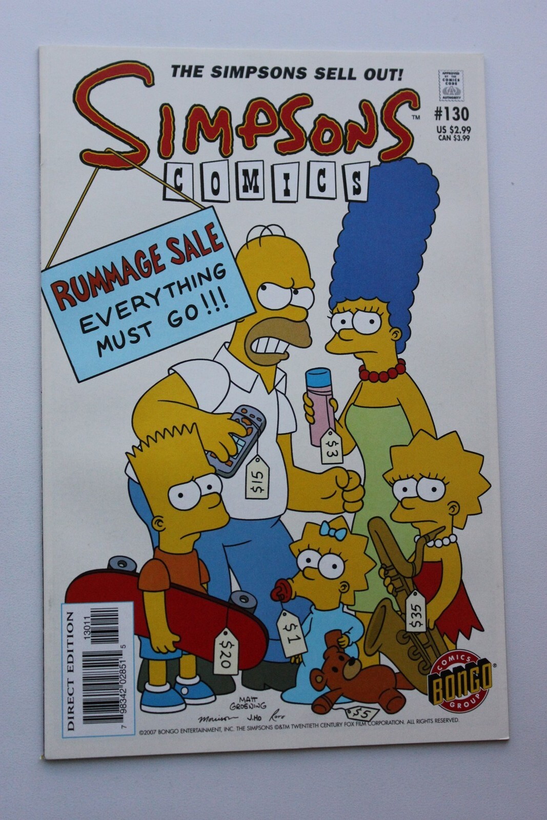 Grade: NM Simpsons Comics #130 (2007). This comic is in NM condition. This is a quickly assessed grade. Please feel to ask any questions. We do accept returns if you feel the grade is off. Combined Shipping is offe ... Read More