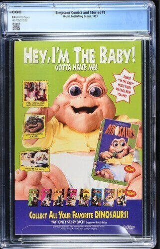 Grade: 9.4 Near Mint Simpsons Comics and Stories #1 CGC 9.4.Items will be shipped extremely carefully to insure they arrive in excellent condition.All S/H for this auction varies. I do combine items for shipping. I ... Read More