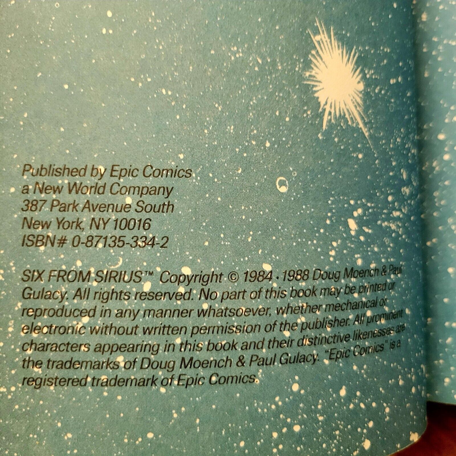 Six From Sirius (Marvel/Epic 1988) TPB Graphic Novel | Doug Moench, Paul Gulacy 1st printing. Collects Six from Sirius (1984 1st Series) #1-4. Written by Doug Moench. Art by Paul Gulacy. Softcover, 128 pages, full color. Please review all the photos as these are the exact items you will receive. If you would like me to shoot more photos, let me know. Feel free to ask questions and see my feedback. Thanks for looking.Seller Information