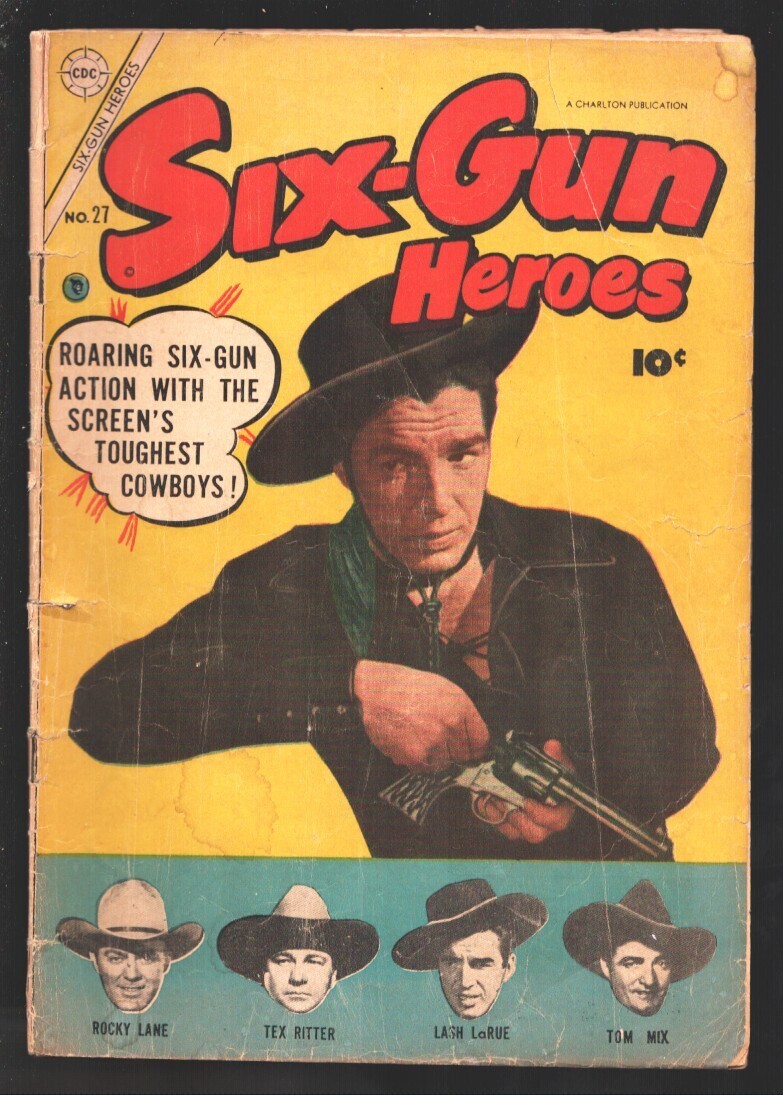 Grade: GSix-Gun Heroes #27 1954-Fawcett-Tom Mix-Tex Ritter-Rocky Lane-Lash Larue-B-Western film stars!!!-G -Tom Mix-Tex Ritter-Rocky Lane-Lash Larue -B-Western film stars!!! Grade: G SKU: EB-05-046