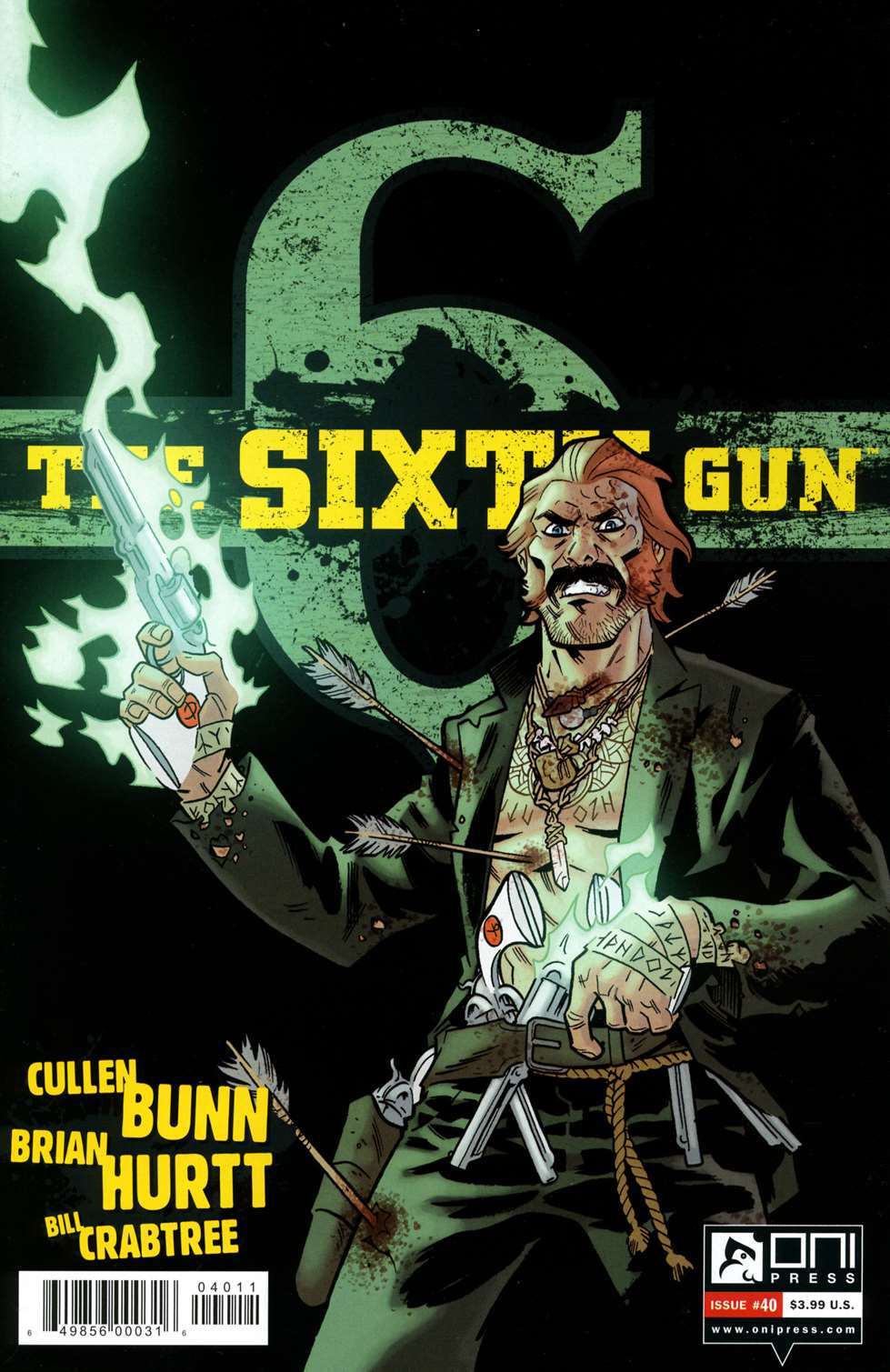 Item: Sixth Gun, The #40 | Publisher: Oni | Cover Date: May 2014 | Writer: Cullen Bunn | Artist: Brian Hurtt | Cover Artist: Brian Hurtt | Storylines: Not the Bullet, But the Fall, Part 5 | With Economy shipping, each additional comic ships for just 50 cents more to customers in the USA. This listing contains a stock photo and information from ComicBase™ and © Human Computing. The stock photo is for reference only. If you would like to see a photo of the actual item, please message us prior to purchasing.Seller Information