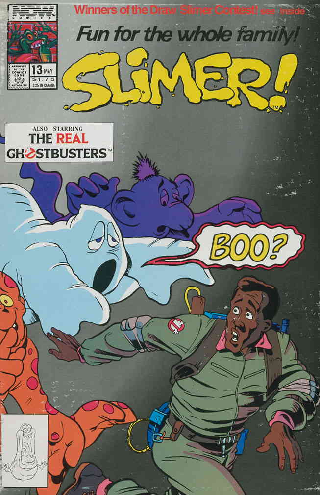Item: Slimer! #13 | Publisher: Now | Cover Date: May 1990 | Writer: Dennys McCoy, Graham Watson, Jane Fabian, Larry Parr, Pamela Hickey | Artist: Anthony Williams, Dave Harwood, Mark Braun, Tony O’Donnell | Storylines: Stupid Cupid; Car-Wash Spook; The Ghost House | Notes: Real Ghostbusters cover | With Economy shipping, each additional comic ships for just 50 cents more to customers in the USA. This listing contains a stock photo and information from ComicBase™ and © Human Computing. The stock photo is for reference only. If you would like to see a photo of the actual item, please message us prior to purchasing.Seller Information