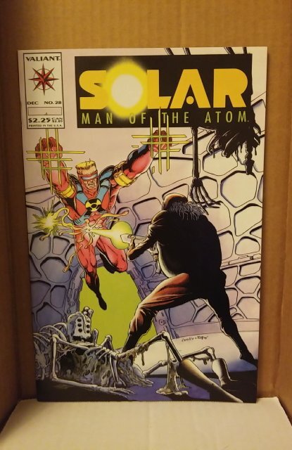 Solar, Man of the Atom #28 (1993) . I have graded the comic book at FINE+ with the following defects: Light stress marks along the spine. The corners are rounded. Light yellowing of the pages.