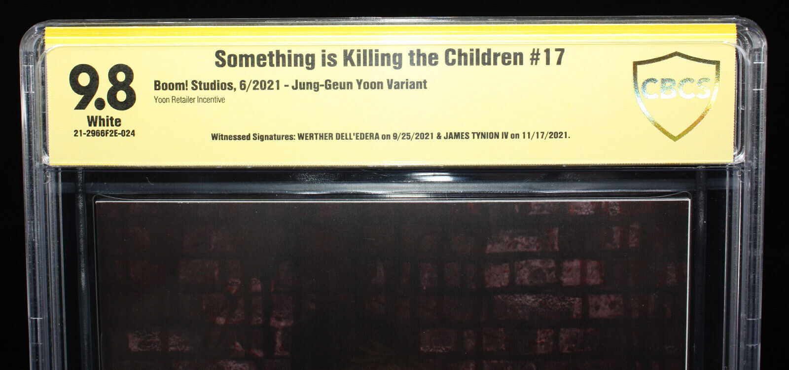 Something is Killing the Children #17 (CBCS 9.8) Signed by Werther Dell'Edera & James Tynion IV - Jung-Geun Yoon Variant - 2021Size: 8" x 13"This item was uploaded by RV.If you have any specific questions or requests, please ask us prior to ordering and we'll get back to you as soon as we can. If there are any problems with your order whatsoever, please message us before leaving feedback and we'll be happy to work with you to fix the situation!We ship worldwide, combine purchases, and charge exact shipping. The price may vary based on size, weight, and location. If you are automatically overcharged for shipping, message us and we'll be happy to revise the invoice or refund you the excess amount. If you have any questions regarding shipping, please message us.International Buyers - Please Note: Import duties, taxes, and charges are not included in the item price or shipping cost. These charges are the buyer's responsibility. Please check with your country's customs office to determine what these additional costs will be prior to bidding or buying. Payment can be made by PayPal and credit cards directly.120,000+ items in total in my Hip store! Frequently Asked Questions: When are your operation hours? Our in office hours are Monday - Friday, 11 am - 8 pm. We are not open on weekends, so if you send us a request on Friday evening we won't get back to you until Monday afternoon. Please don't take it as us ignoring you! We will work on your request Monday and get back to you as soon as we can. Also, if you order from us on a Friday evening or Saturday morning we won't start processing your order until we open on Monday. That means on Monday it will be pulled and prepped for shipping, then picked up by the postman on Tuesday morning. When will you ship my item? The tracking hasn't moved. We realize you're eager to get your item, so if the tracking hasn't moved in a few days please don't be concerned. We give the postman a lot of packages daily, sometimes as many as 100, so he does not scan each item for us upon pickup as he says it would be too time consuming for him to do so. If you get a tracking number from us, that almost always means your item was picked up by the postman the next business day. The USPS is also imperfect. There are times when the tracking won't even show movement until it's in your area's regional distribution center. This is normal in our experience. Is the item pictured the exact one for sale?Yes! We don't use stock images and go through great lengths to photograph everything we list. The item pictured is exactly what you should receive UNLESS it is a fixed price listing with multiple items available.Have these CGCs had any previous owners? No. I have personally sent in almost all of these to CGC and had them returned to me, offering them fresh to the market for the 1st time. What is your base shipping for CGC comics? Domestic for CGCs are $10 for the first and $5 for each additional one you add. How do you ship comics?We ship in rigid cardboard mailers to protect your comic book from the worst the mail system has to offer. Price varies based on the number of books you purchase, but we try to keep costs as low as we can and charge exact shipping. If it looks unusually high to you please send us a message and we'll be happy to double check for you. Do you combine shipping? Yes, of like items. Such as: several comics can fit in one cardboard mailer, as can more than one record. Multiple art pages can easily be combined because they are light and thin. Where combined shipping differs is with size and weight. For instance, two statues require a much bigger box. Same goes for CGCs, as the package gets bigger and heavier as you go. Do you ship well? I've had some bad experiences... You needn't worry; we are professionals who value your business and want your item to arrive safely as much as you do. I have been collecting for over 30 years. I send out items the way I would like to receive them. The tracking says my item is "OUT FOR DELIVERY" in New Jersey. Why is that?If the tracking indicates that the item is "OUT FOR DELIVERY" in NJ don't worry, it's just what the tracking says when it's carried over from the postman to the sorting center. This is normal for our Post Office and will not impact you receiving your item in a timely matter.I changed my mind after successfully winning the auction or fixed price listing, will you cancel the transaction? Please only bid or hit BUY IT NOW if you are willing to follow through and pay for the item, we will not cancel the transaction. As a seller, Hip penalizes us every time we cancel an order, so it is detrimental to our business to do so. Therefore if you will not pay, then you'll have to let Hip cycle this to an "unpaid item" and accept whatever action Hip deems necessary. 120,000+ items in total in my Hip store! AS SEEN ON TV I have been buying and selling artwork and comics for about 20 years. The artwork pictured are all one of kind originals unless otherwise described. If you are new to buying art feel free to ask any questions that you may have. 120,000+ items in total in my Hip store! Small, Regular, and Large Portfolios available; see my Hip store!