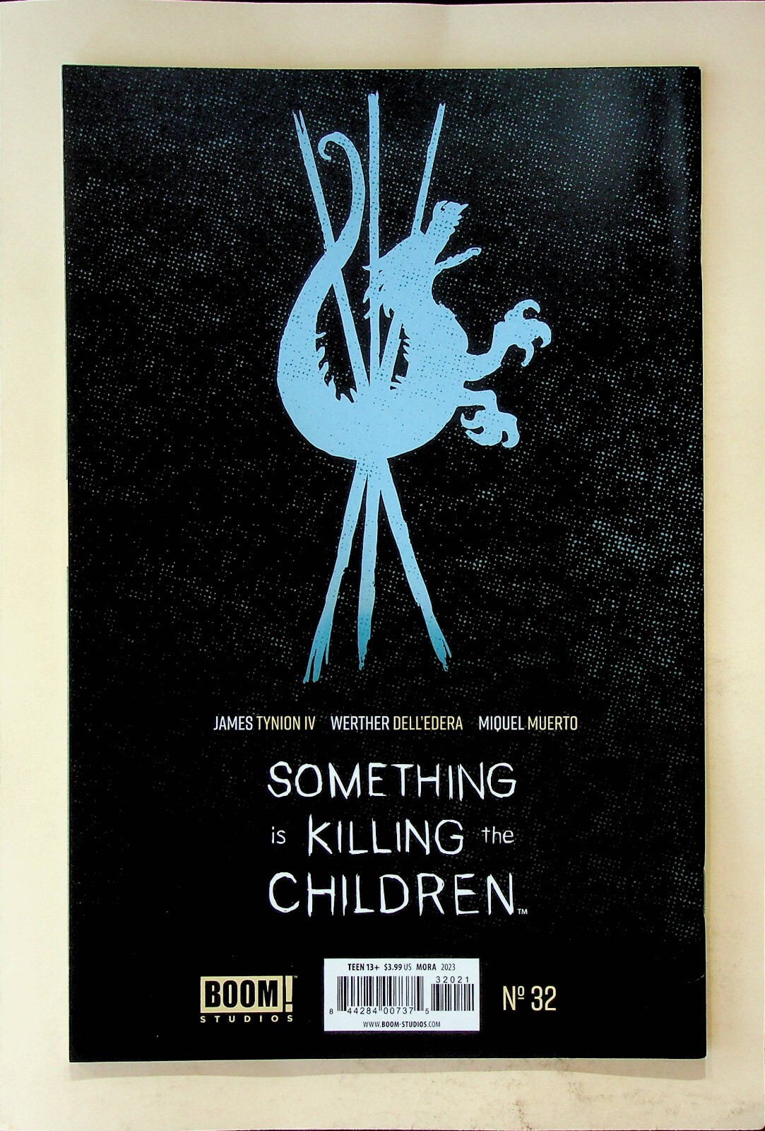 Grade: 9.8 Near Mint/MintThis is a comic of Something is Killing the Children No. 32 published by Boom! Studios in Aug., 2023. The grade is probably at least a Near Mint/Mint but I will leave that up to the buyer to determine from the scans.The pictures are of the actual copy being auctioned. The pages are complete and intact. It has been stored bagged and boarded in a climate controlled environment in a smoke free home.If you would like more information, please feel free to ask. Please check out our other listings for more interesting items. I combine shipping whenever possible. All items are well packed and sent by USPS Ground Advantage Mail.