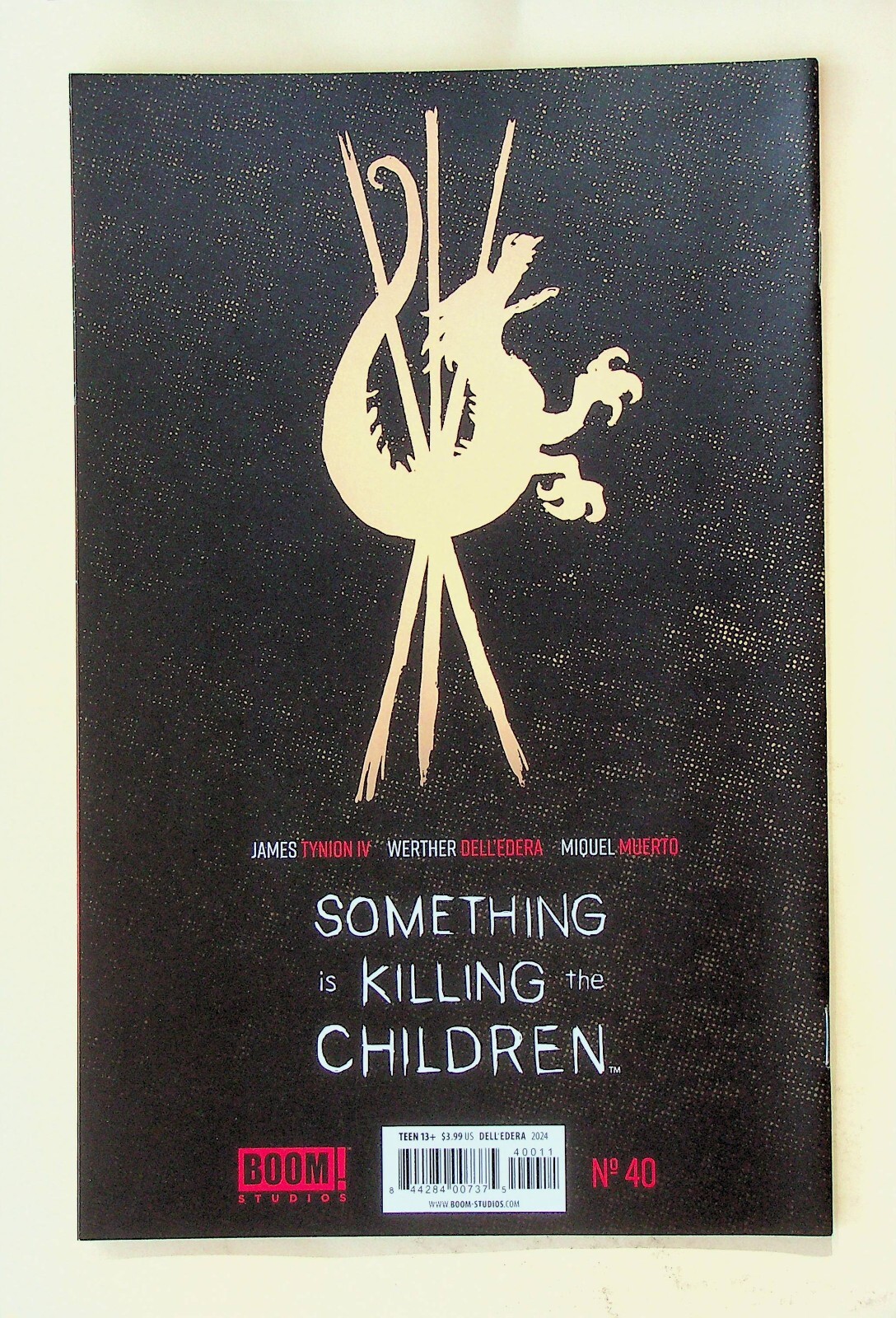 Grade: 9.8 Near Mint/MintThis is a comic of Something is Killing the Children No. 40 published by Boom! Studios in Aug., 2024. The grade is probably at least a Near Mint/Mint but I will leave that up to the buyer to determine from the scans.The pictures are of the actual copy being auctioned. The pages are complete and intact. It has been stored bagged and boarded in a climate controlled environment in a smoke free home.If you would like more information, please feel free to ask. Please check out our other listings for more interesting items. I combine shipping whenever possible. All items are well packed and sent by USPS Ground Advantage Mail.