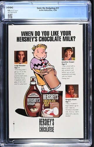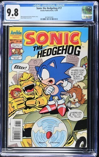 Grade: 9.8 Near Mint/MintSonic the Hedgehog #17 CGC 9.8.You will receive exactly what is pictured in the listing. Items will be shipped extremely carefully to insure they arrive in excellent condition.All S/H for this auction varies. I do combine items for shipping. Insurance is included with all shipping. For International buyers please note any custom fees charged by your country are your responsibility. I will always try to accommodate any special requests.If there are ever any problems regarding your purchase please contact me prior to putting in claims, leaving negative feedback, or giving out low ratings. I aim for 5 out of 5 stars all the time and will always do my best to fix any issues. I always make sure my customers are happy!!!!I ship fast and secure, just check my feedback. Please feel free to E-mail me with any questions or if you need larger scans. Please check out my other auctions!! Happy Bidding. Good Luck.