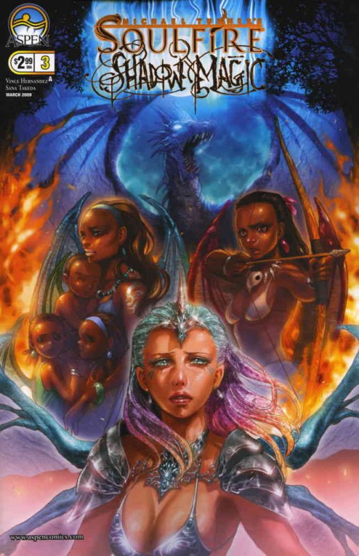 Item: Soulfire: Shadow Magic (Michael Turner's ) #3A | Publisher: Aspen | Cover Date: March 2009 | Writer: Vince Hernandez | Artist: Sana Takeda | Cover Artist: Sana Takeda | Storylines: The Curse of Power | Notes: ... Read More