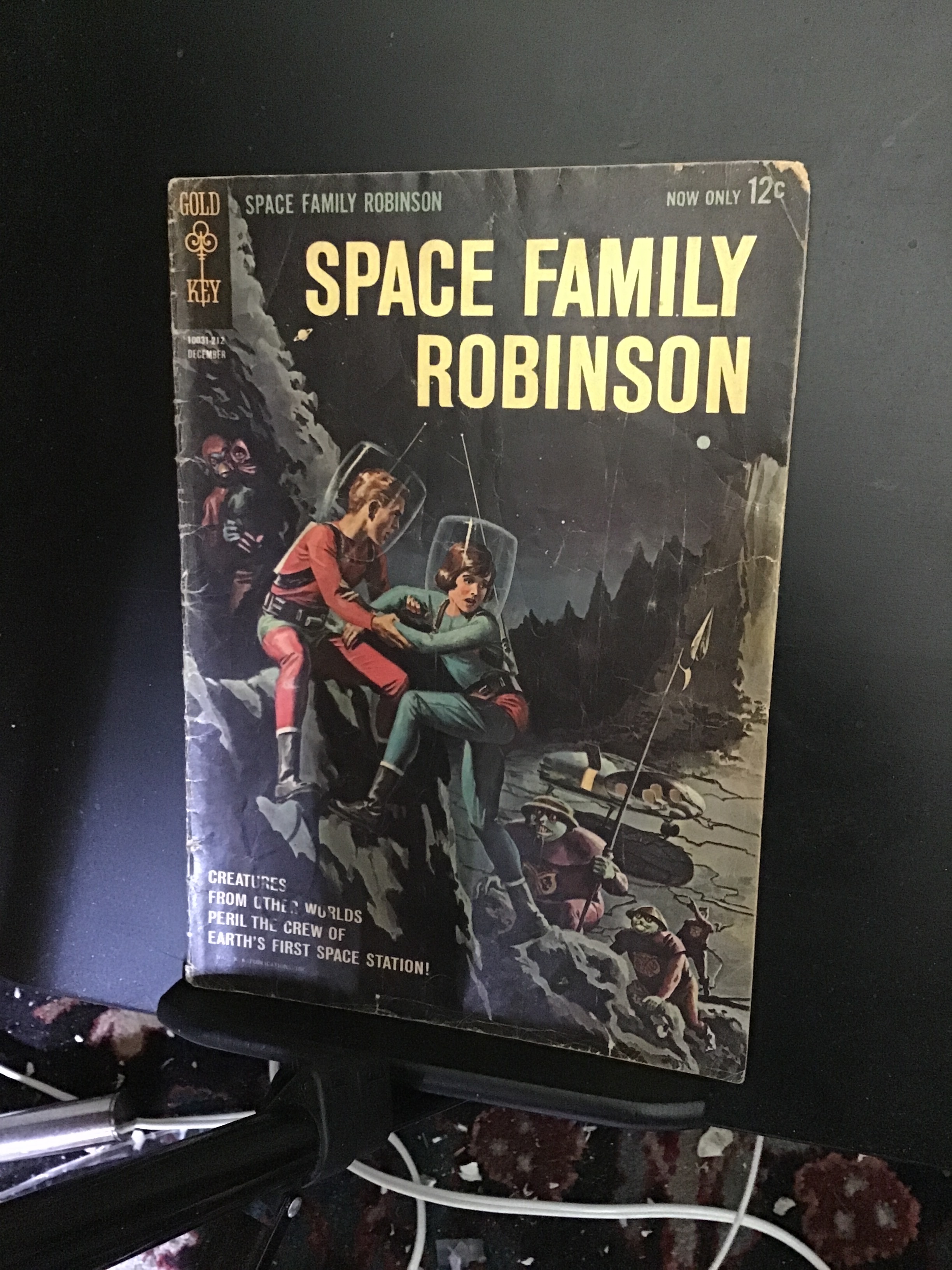 Space Family Robinson #1 (1962) This book has deep rich color and decent eye-appeal on this all time classic hard to get in high grade, first lost in space black cover! The book as attached to the spine and the centerfold. With I film tape seal on the inside outer edge of the front cover along withcream/slight heavy cream tint pages and white inner covers. We have adjusted the Grade accordingly. Note any glare or shadow on the comic book is from the camera and not on the book itself unless otherwise noted. With light wear appropriate grade.Seller Information
