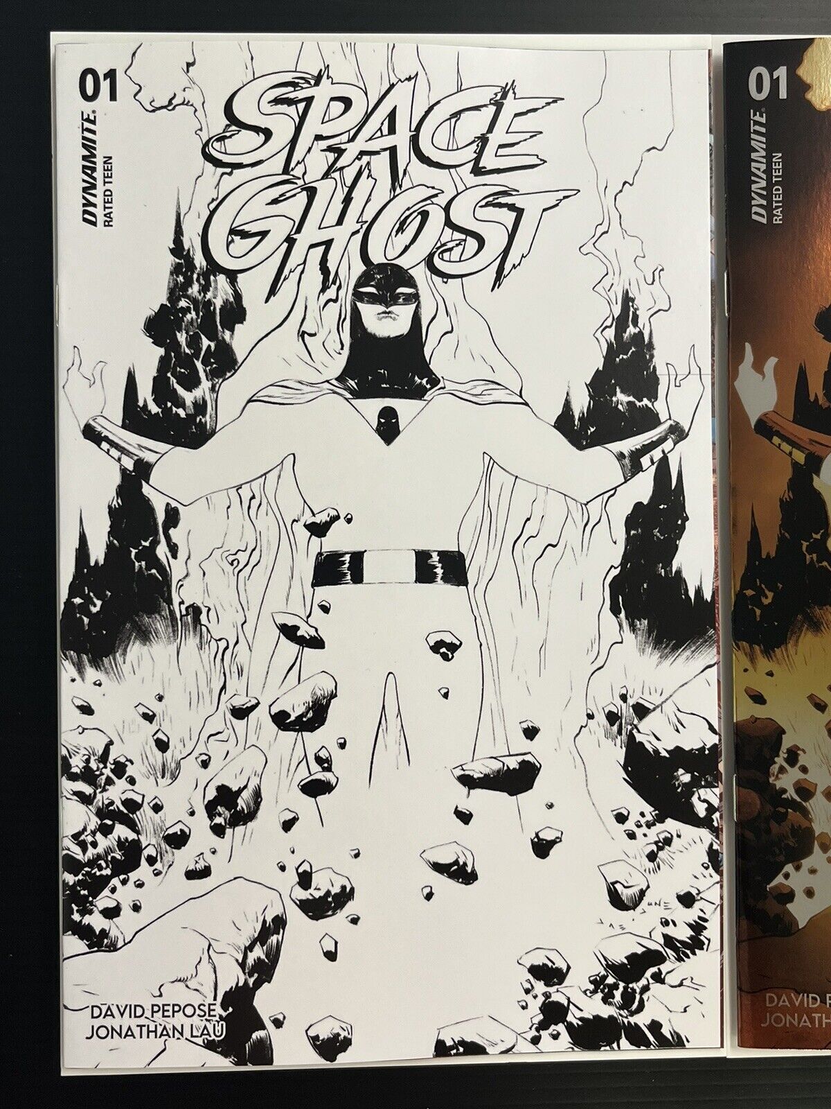 Space ghost #1 cvr j 1:10 foil var + o 1:25 lee line art (set of 2)dynamite(w) david pepose (a) jonathan lau (ca) jae leegreed and corruption flourish in the darkness between stars. With the territories of the galactic federation spread far and wide across the vastness of space, pirates and hijackers ransack the distant colonies with cruel disregard for the innocent scientists living within them.Yet there is a cosmic vigilante who metes out justice throughout the galaxy, bringing vengeance to those prey upon the defenseless.Some say he is a policeman who has abandoned the strictures of the law. Others say he is a phantom, the sole survivor of a war-torn planet. And those who have survived his wrath claim he is more a force of nature, able to bend the very elements of creation to decimate his enemies.They call him the space ghost - and his adventures begin here!Award-winning writer david pepose (punisher) and superstar artist jonathan lau (vampirella strikes) kick off this action-packed series with a surprise attack on space colony omicron - home of the brilliant scientist dr. Jerrod keplar and his young children, jan and jace, as well as their pet monkey, blip. With the colony's defenses overwhelmed, all seems lost - but these ruthless pirates didn't count on the wild card that is space ghost!********thank you for taking a look at our listing!************ please consider exploring our store as we are adding new items almost daily!All comics are individually bagged and boarded.Single comics are inserted into a tyvek mailer and then a bubble-wrap envelope.Paired comics are bundled together in an extra mylar bag and inserted directly into a bubble-wrap envelope.Envelopes are expertly packed inside a tri-fold diamond comic mailer and a shipping label is affixed.Tracking is automatically uploaded to the order once the shipping label is created.Please feel free to reach out with any further questions about our process, listings or items!Seller Information