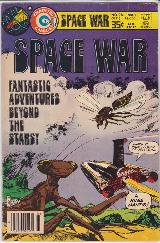 Space War #28 by Charlton Comics copyright 1978. I have graded the comic book, using the Overstreet Grading Guide, at FINE with the following defects: Light stress marks along the spine. The corners are rounded. There is some yellowing of the pages.Seller Information