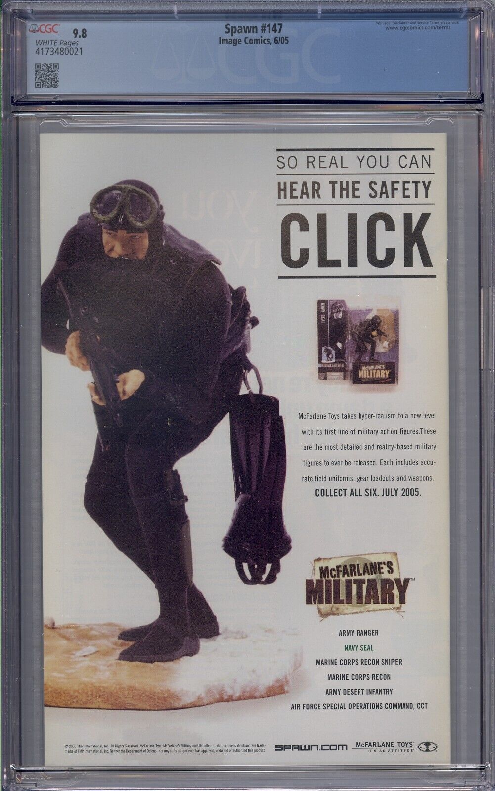 Grade: 9.8 Near Mint/MintSpawn #147 CGC 9.8.You will receive exactly what is pictured in the listing. Items will be shipped extremely carefully to insure they arrive in excellent condition. All S/H for this auction varies. I do combine items for shipping. Insurance is included with all shipping. For International buyers please note any custom fees charged by your country are your responsibility. I will always try to accommodate any special requests. If there are ever any problems regarding your purchase please contact me prior to putting in claims, leaving negative feedback, or giving out low ratings. I aim for 5 out of 5 stars all the time and will always do my best to fix any issues. I always make sure my customers are happy!!!! I ship fast and secure, just check my feedback. Please feel free to E-mail me with any questions or if you need larger scans. Please check out my other auctions!! Happy Bidding. Good Luck. Track Page Views WithAuctiva's FREE Counter