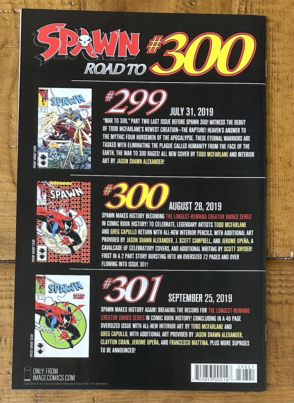 Spawn #298 Virgin Variant Amazing Homage NM Todd McFarlane Image Comics