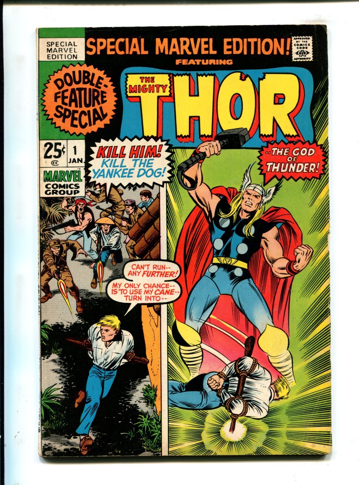 Special Marvel Edition #1 - Marie Severin Cover/ Jack Kirby, Stan Lee (5.5) 1971Size: 7" x 10"This item was uploaded by __LM__.WE COMBINE SHIPPING!!! Either wait for us to send you an invoice after you commit to buy or, if it makes you pay right away, message us back and we'll refund the excess charge. Buy as many single comic books as you want for one low flat shipping rate in the United States! International will be charged exact according to size and weight.If you have any specific questions or requests, please ask us prior to ordering and we'll get back to you as soon as we can.If there are any problems with your order whatsoever, please message us before leaving feedback and we'll be happy to work with you to fix the situation! We ship worldwide, combine purchases, and charge exact shipping. The price may vary based on size, weight, and location. If you are automatically overcharged for shipping, message us and we'll be happy to revise the invoice or refund you the excess amount. If you have any questions regarding shipping, please message us.International Buyers - Please Note:Import duties, taxes, and charges are not included in the item price or shipping cost. These charges are the buyer's responsibility.Please check with your country's customs office to determine what these additional costs will be prior to bidding or buying.Payment can be made by PayPal and credit cards directly.120,000+ items in total in my Hip store!Frequently Asked Questions:When are your operation hours?Our in office hours are Monday - Friday, 11 am - 8 pm. We are not open on weekends, so if you send us a request on Friday evening we won't get back to you until Monday afternoon. Please don't take it as us ignoring you! We will work on your request Monday and get back to you as soon as we can. Also, if you order from us on a Friday evening or Saturday morning we won't start processing your order until we open on Monday. That means on Monday it will be pulled and prepped for shipping, then picked up by the postman on Tuesday morning.When will you ship my item? The tracking hasn't moved.We realize you're eager to get your item, so if the tracking hasn't moved in a few days please don't be concerned. We give the postman a lot of packages daily, sometimes as many as 100, so he does not scan each item for us upon pickup as he says it would be too time consuming for him to do so. If you get a tracking number from us, that almost always means your item was picked up by the postman the next business day. The USPS is also imperfect. There are times when the tracking won't even show movement until it's in your area's regional distribution center. This is normal in our experience.Is the item pictured the exact one for sale?Yes! We don't use stock images and go through great lengths to scan or photograph everything we list. The item pictured is exactly what you should receive UNLESS it is a fixed price listing with multiple items available.Can you issue a COA?We can, upon request. Please make sure you leave us a note while checking out and shoot us a message immediately after requesting one, just to be sure.How do you grade?Grading is very subjective, but we are professionals with decades of grading experience between us who try the best we can to accurately describe the condition of the items we list.Anthony is an Overstreet Comic Book Price Guide AdvisorPlease see the grading chart below for a breakdown of how we grade:NOTE: We don't grade any raw books higher than 9.2, as once you go higher than that grading gets really subjective. If you buy a NM book from us, it may very well be higher than 9.2 but we play it safe and grade conservatively. 9.2 NM Near Mint 9.0 VF/NM Very Fine/Near Mint 8.5 VF+ Very Fine+ 8.0 VF Very Fine 7.5 VF- Very Fine- 7.0 FN/VF Fine/Very Fine 6.5 FN+ Fine+ 6.0 FN Fine 5.5 FN- Fine- 5.0 VG/FN Very Good/Fine 4.5 VG+ Very Good+ 4.0 VG Very Good 3.5 VG- Very Good- 3.0 GD/VG Good/Very Good 2.5 GD+ Good+ 2.0 GD Good 1.8 GD- Good- 1.5 FR/GD Fair/Good 1.0 FR Fair 0.5 PR PoorHow do you ship comics?We ship in rigid cardboard mailers to protect your comic book from the worst the mail system has to offer. Price varies based on the number of books you purchase, but we try to keep costs as low as we can and charge exact shipping. If it looks unusually high to you please send us a message and we'll be happy to double check for you.Do you combine shipping?Yes, of like items. Such as: several comics can fit in one cardboard mailer, as can more than one record. Multiple art pages can easily be combined because they are light and thin. Where combined shipping differs is with size and weight. For instance, two statues require a much bigger box. Same goes for CGCs, as the package gets bigger and heavier as you go.Do you ship well? I've had some bad experiences...You needn't worry; we are professionals who value your business and want your item to arrive safely as much as you do. I have been collecting for over 30 years. I send out items the way I would like to receive them.The tracking says my item is "OUT FOR DELIVERY" in New Jersey. Why is that?If the tracking indicates that the item is "OUT FOR DELIVERY" in NJ don't worry, it's just what the tracking says when it's carried over from the postman to the sorting center. This is normal for our Post Office and will not impact you receiving your item in a timely matter.What is the difference between a RUN and a LOT?Good question. A RUN will be a collection of consecutive issues with no breaks in between them. If it says RUN of #s 1 - 50 you will receive 50 consecutive comics. A LOT will be within a certain range, so a 50pc LOT will not contain consecutive books.I changed my mind after successfully winning the auction or fixed price listing, will you cancel the transaction?Please only bid or hit BUY IT NOW if you are willing to follow through and pay for the item, we will not cancel the transaction. As a seller, Hip penalizes us every time we cancel an order, so it is 