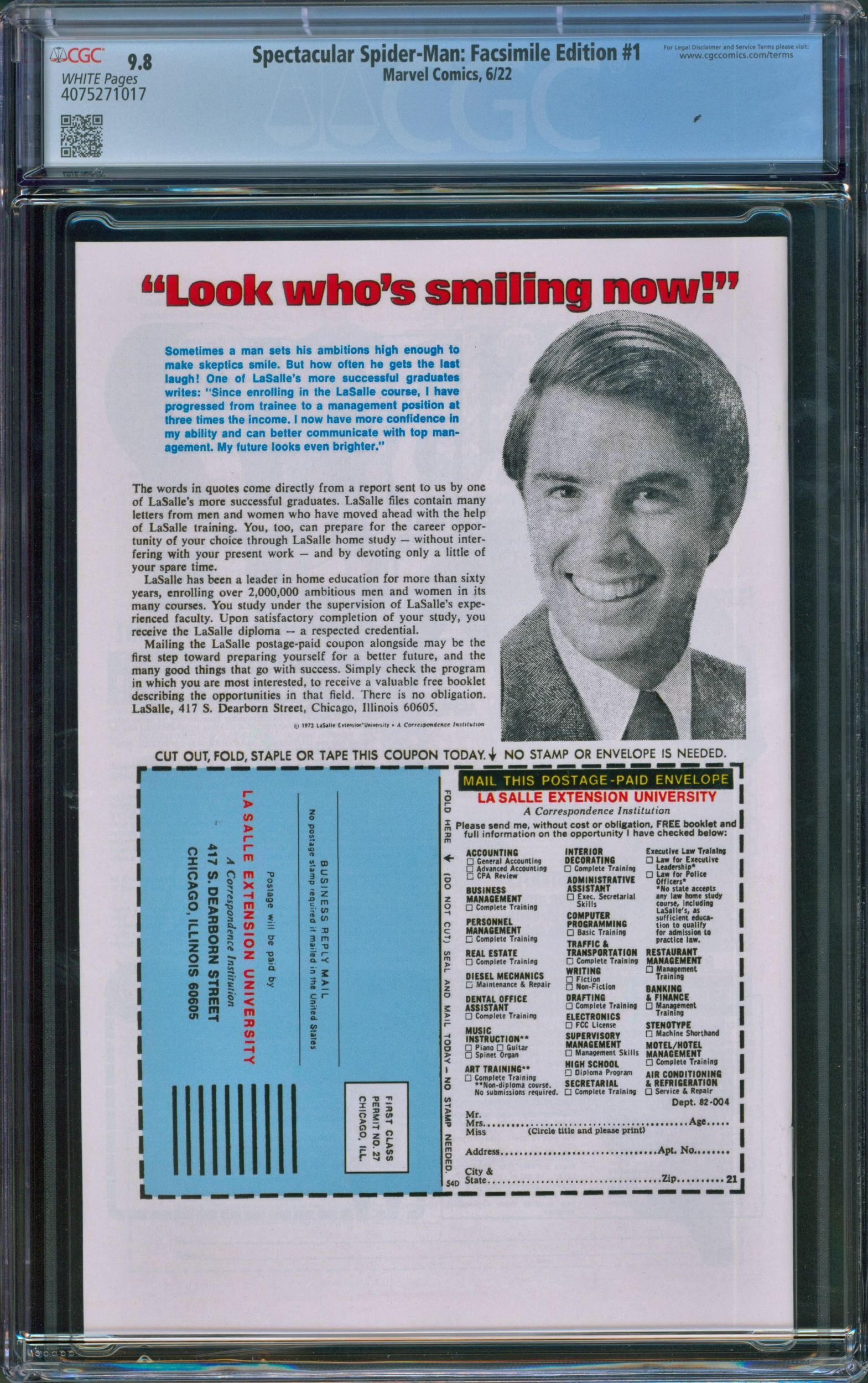 Spectacular Spider-Man 1: Facsimile Edition CGC 9.8 Marvel 2022
