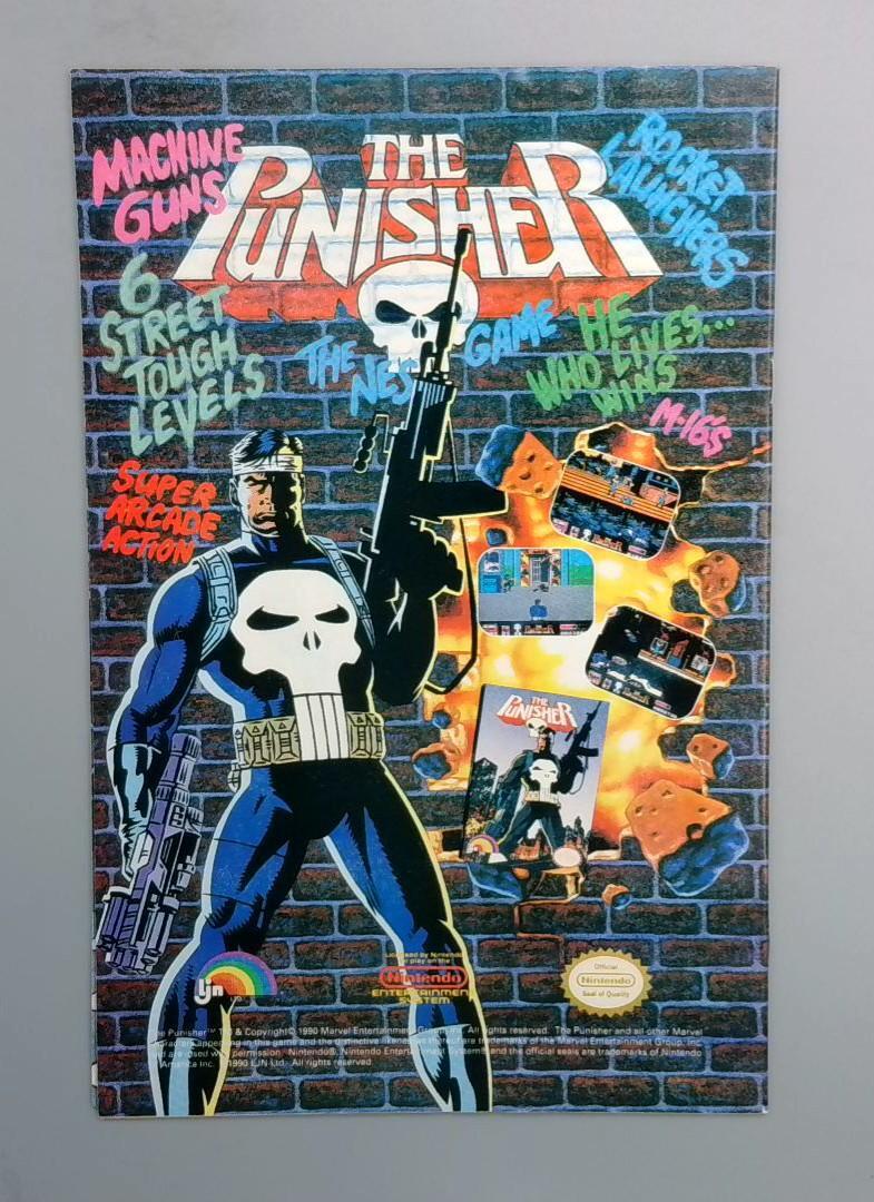 The Punisher Nintendo game promotional comic book poster highlights the video game adaptation of the character, featuring the iconic skull-emblazoned vigilante against a graffiti-style brick wall background. The image showcases various game elements, including "6 Street Tough Levels" and "Super Arcade Action", emphasizing the game's action-packed gameplay. This promotional artwork blends comic book aesthetics with video game marketing, representing the Punisher's transition into the gaming medium.