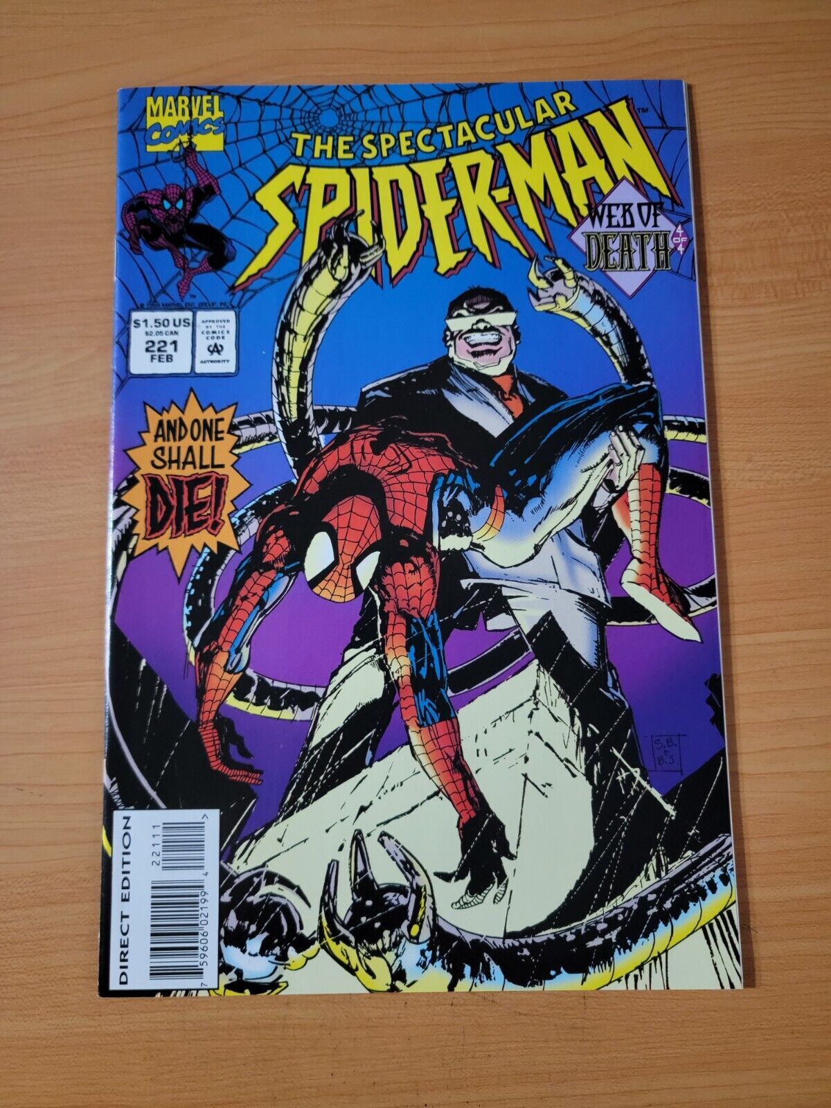 Item DescriptionSpectacular Spider-Man #221 Direct Market EditionPublisher: Marvel ComicsPublished: 1995Item Grade/ConditionGrade: NEAR MINT For more information about this grade and other grades, please see our grading standards.~ WE TAKE HIGH DEFINITION PICTURES OF OUR COMICS ~ For more detail use the ZOOM Function and check them out yourself! ~Shipping Info:United States: Comic Book & Magazine Orders of all sizes, big and small ship for a flat Single Shipping ChargeInternational: We use Calculated Shipping! ~ This insures that you get the LOWEST POSSIBLE COST! ~ Please give us one business day to calculate large orders! The Calculator for Hip is pretty bad for international, contact us if you are looking to order multiple books so we can help you make it work on the back end! As a courtesy to our customers, we insure all orders over 50$ US ~ YOU DONT PAY EXTRA!Delivery TimeWe process and ship all orders within 1 business days. Once shipped, estimated U.S. transit time is 2-10 business days; international 14-21 business days.(Orders placed on Friday afternoon as well as weekends will be shipped the next business day as we do not ship on the weekends).PackingOmnomax Traders has mastered packing to ensure our orders of a "damage-free transport."Using the following methods, we have seen a nearly perfect 99% success rate for undamaged comics!Here is how our orders ship:All Orders :Bagged AND Boarded, ALWAYS NO EXCEPTIONS!Shipped in a Gemini Comic Mailer OR Tightly secured between 4x stiff pieces of corrugated cardboard (double Sandwiched)Sealed on all 4 sides with strong packing tape (Items doesn't even wiggle).:*Now this method is nearly perfect! however we have seen damage happen to items ( only once or twice a year ) ~ this is often due to bad handling by the postal service. Always remember to contact us if this happens! we are committed to quality service!*Offers History