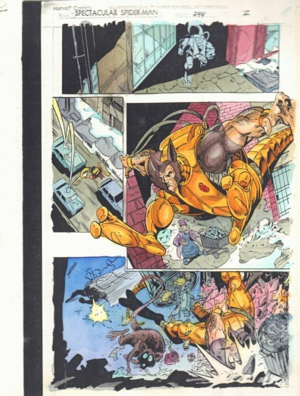 Spectacular Spider-Man #244 p.2 Color Guide Art - Kangaroo in Alley - 1997Luke Ross pencillerJohn Stanisci inkerJohn Kalisz painter"This is a B&W STAT photo copy that the colorist, John Kalisz, painted over to creat ... Read More