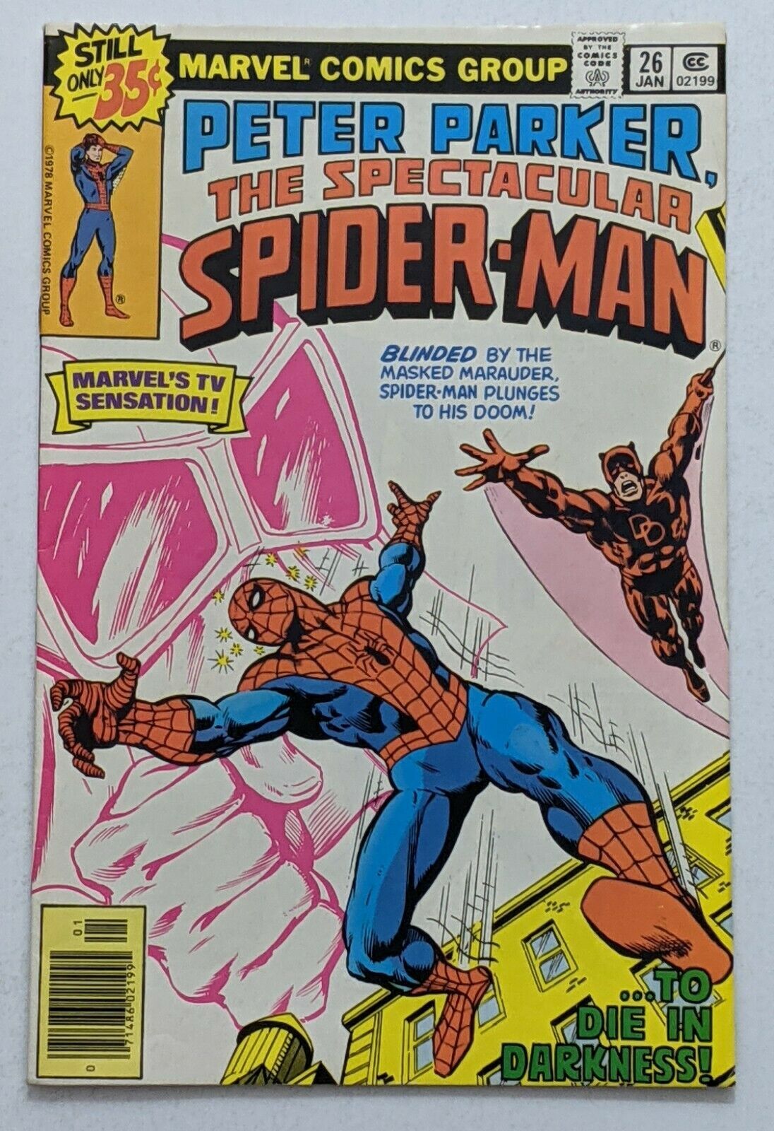 Spectacular Spider-Man #26 (Jan 1979, Marvel) FN 6.0 Daredevil appearance. Off-white pages.