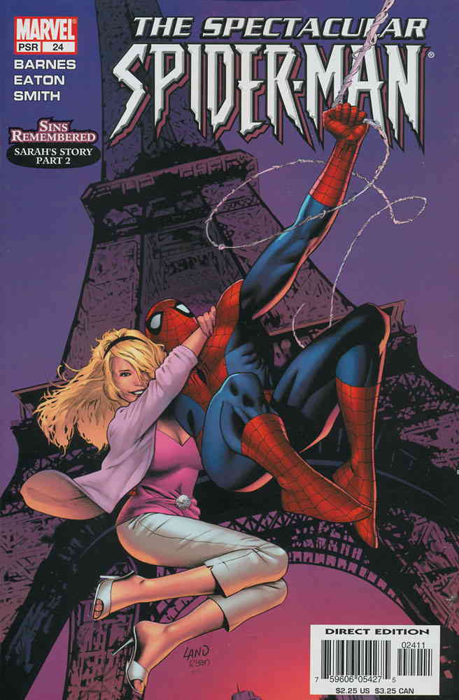Item: Spectacular Spider-Man (2nd Series) #24 | Publisher: Marvel | Cover Date: March 2005 | Writer: Samm Barnes | Artist: Scot Eaton | Cover Artist: Greg Land | Storylines: Sins Remembered: Sarah’s Story, Part 2 | With Economy shipping, each additional comic ships for just 50 cents more to customers in the USA. This listing contains a stock photo and information from ComicBase™ and © Human Computing. The stock photo is for reference only. If you would like to see a photo of the actual item, please message us prior to purchasing.Seller Information